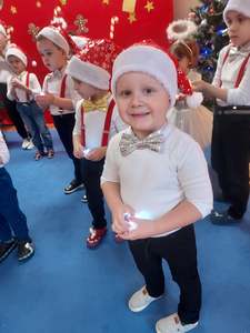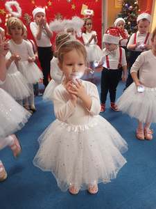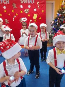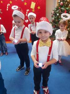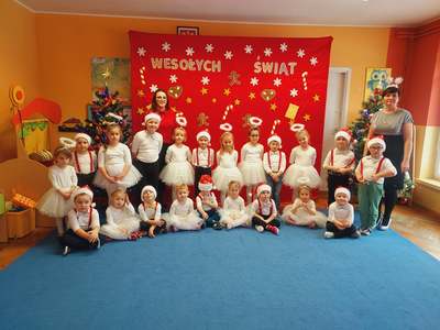 22 grudnia przedszkolaki złożyły swoim najbliższym i dzieciom nieobecnym w przedszkolu życzenia bożonarodzeniowe. Z tej okazji każda grupa w pięknych strojach i przy świątecznej dekoracji, nagrywała przygotowane wcześniej kolędy, pastorałki i wierszyki. Dzieci bardzo cieszyły się, że mogą sprawić tak miłą niespodziankę. WESOŁYCH ŚWIĄT!