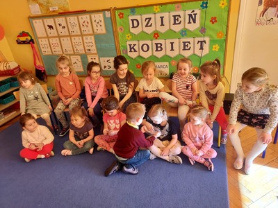 Dzień Kobiet to wyjątkowy dzień, ważny dla wszystkich kobiet, zarówno tych dużych, jak i małych, 8 marca odbyła się uroczystość z tej okazji. Radosna atmosfera panowała już od samego rana. Dzieci z obu grup spotkały się w sali starszaków, aby wspólnie świętować. Przedszkolaki uczestniczyły w konkursach i zabawach integracyjnych. Tańczyły także do ulubionych piosenek. W tym szczególnym dniu wszystkie kobietki otrzymały od swoich kolegów serdeczne życzenia i upominki.