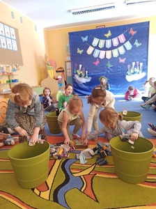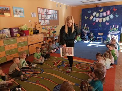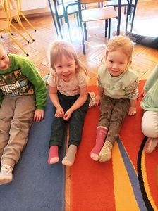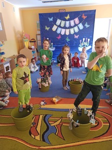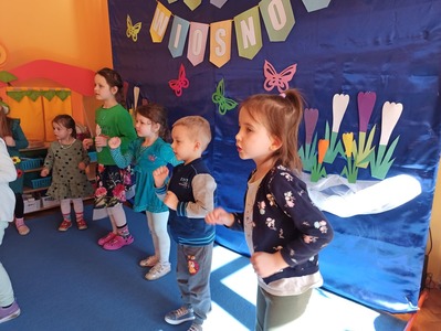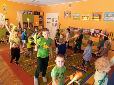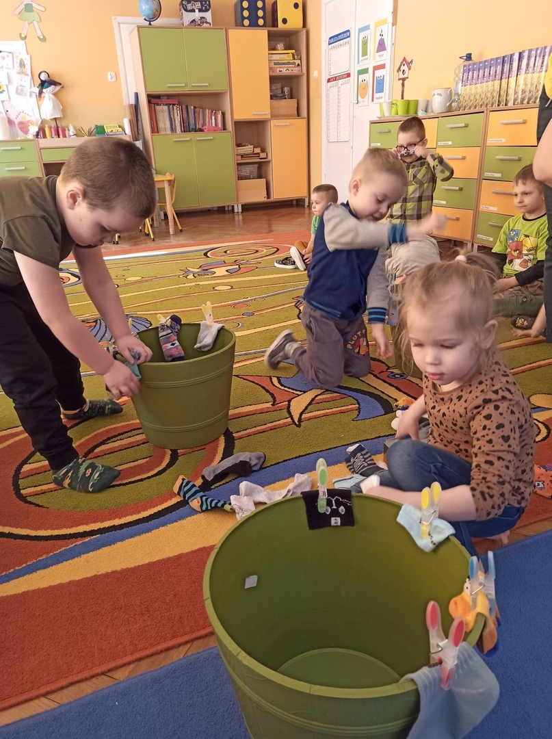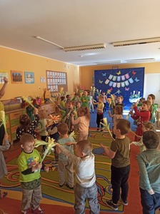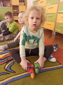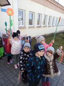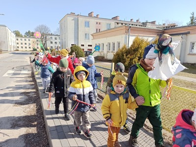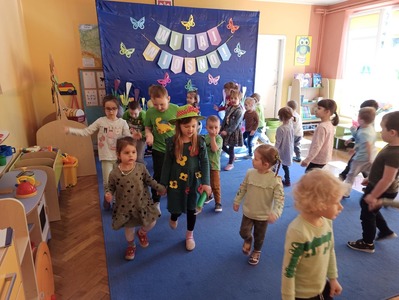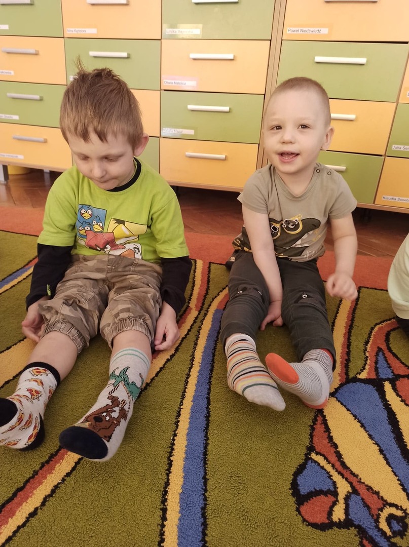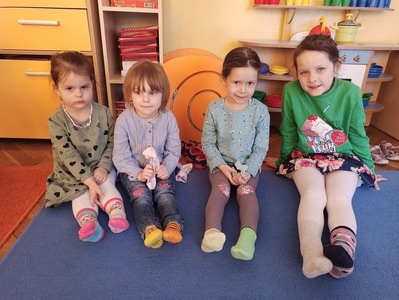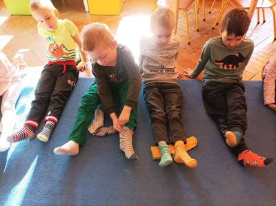 W tym roku 21 marca obchodziliśmy w naszym przedszkolu nie tylko Pierwszy Dzień Wiosny ale także Dzień Kolorowej Skarpetki. Z tej okazji dzieci przyszły do przedszkola ubrane w bardzo nietypowy sposób - były ubrane w coś zielonego a na dodatek miały dwie różne skarpetki. Kolorowe skarpetki to symbol solidaryzowania się z chorymi na Zespół Downa. W pierwszy dzień wiosny obchodzimy Światowy Dzień Zespołu Downa. Święto zostało ustanowione w 2005 roku z inicjatywy Europejskiego Stowarzyszenia Zespołu Downa. Celem dnia jest podniesienie świadomości na temat życia i potrzeb osób z zespołem Downa. Celem zajęć było wysnucie z dziećmi wniosków że każdy człowiek jest na swój sposób inny, różnimy się pod wieloma względami i ta inność i różnorodność jest naturalną rzeczą. Osoby z Zespołem Downa żyją wśród nas. Tak jak my bawią się, śmieją i spełniają swoje marzenia. Przedszkolaki wzięły udział w rozmaitych konkursach i zabawach ze śpiewem. Z okazji Pierwszego Dnia Wiosny dzieci wybrały się na spacer w okolicy przedszkola, a następnie na placu przedszkolnym pożegnały Panią Zimę śpiewając piosenkę "Marzanno, marzanno ty zimowa panno" oraz "Maszeruje wiosna".