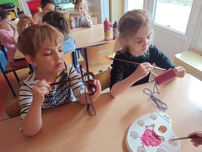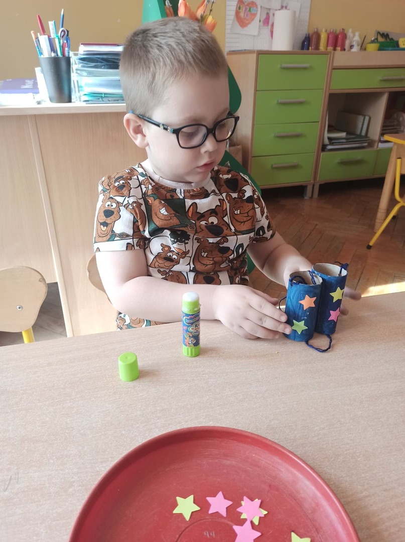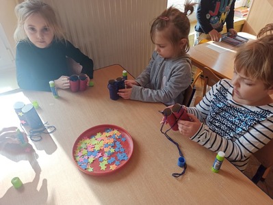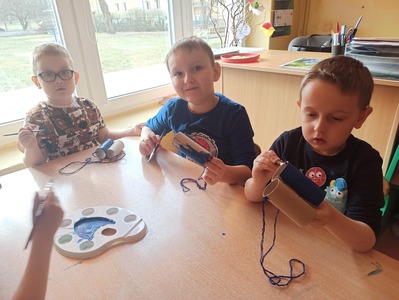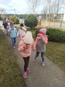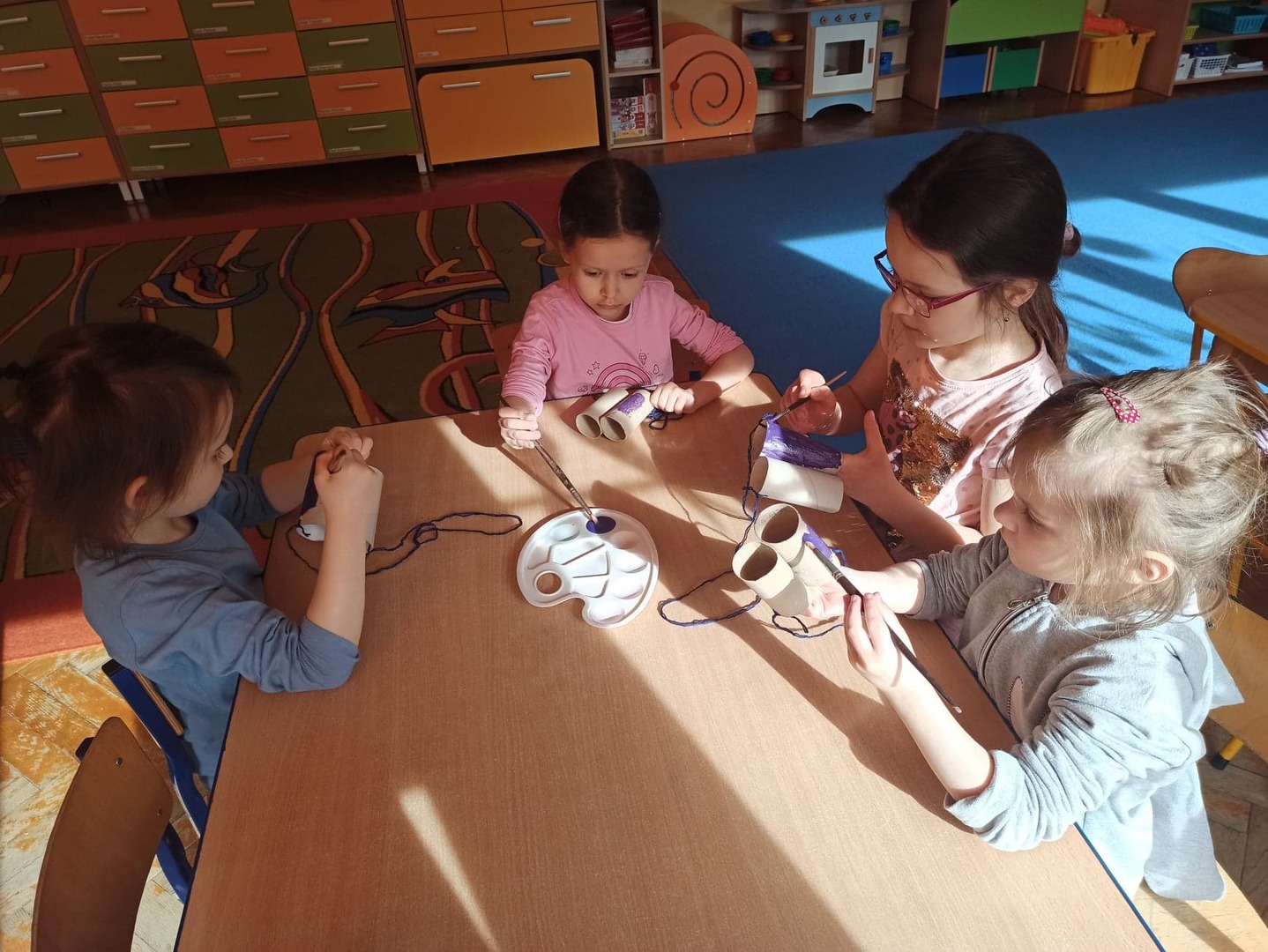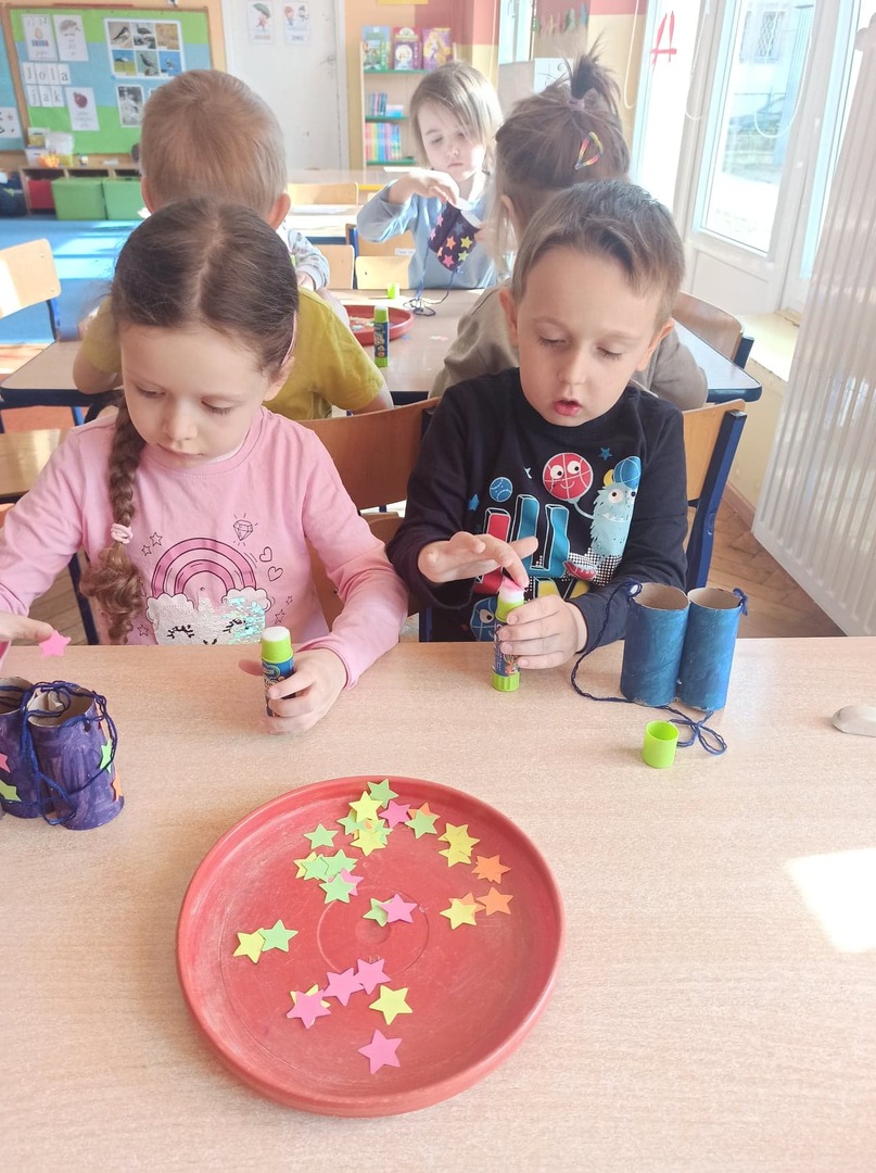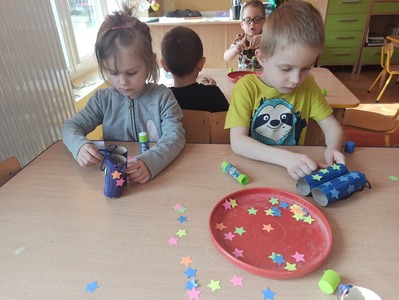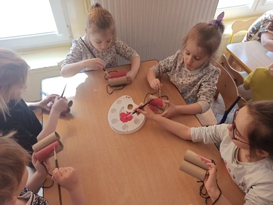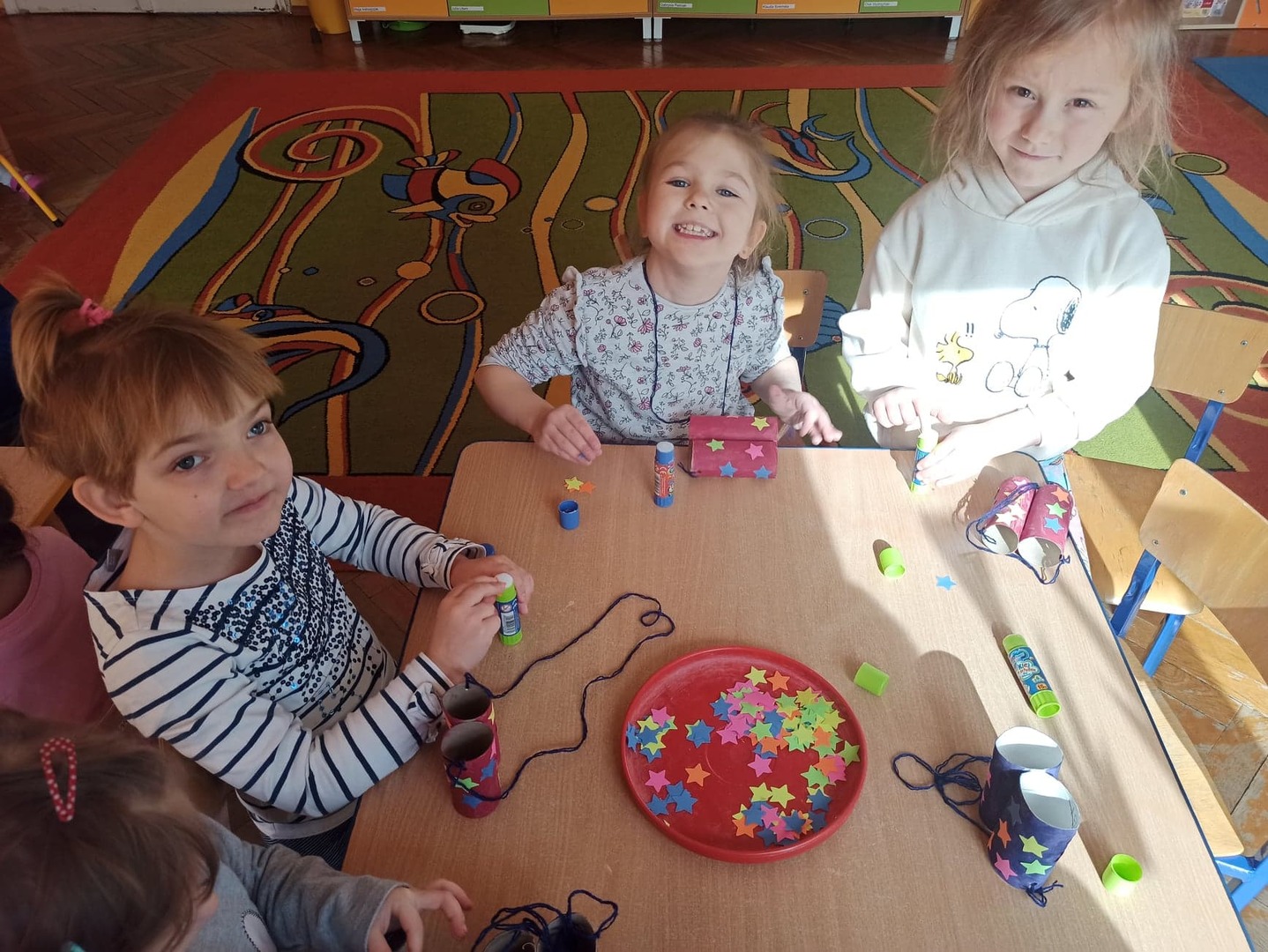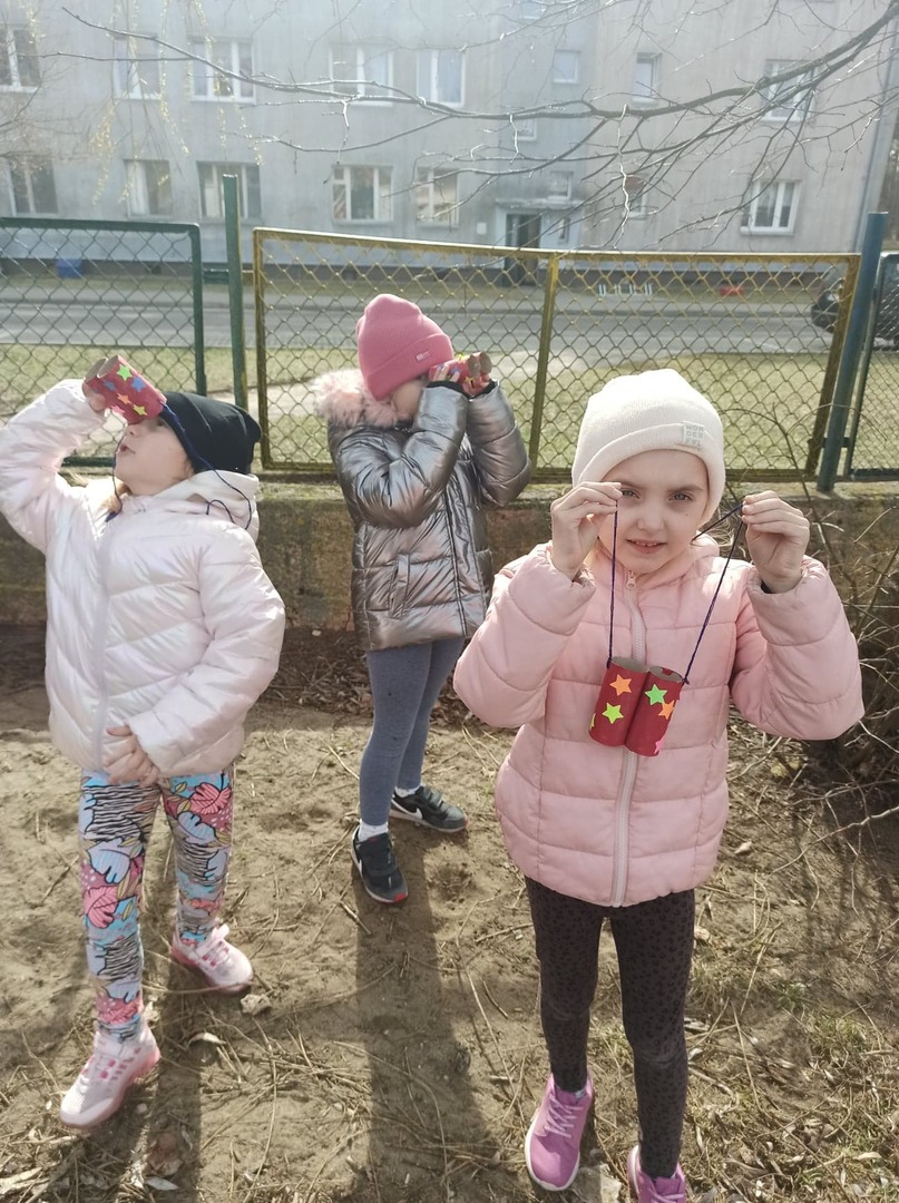 30.03 dzieci z grupy "Motylki" zrealizowały kolejne zadanie z ogólnopolskiego projektu edukacyjnego "Z darami natury świat nie jest ponury". Tym razem dzieci przeobraziły rolki po papierze toaletowym w kolorowe lornetki, które wykorzystały do późniejszych zabaw na powietrzu. Pomysłom nie było końca - dzieci za pomocą lornetek poszukiwały zwiastunów wiosny, bawiły się w piratów a także w poszukiwanie krasnoludków. Jak widać najprostsze zabawki dają ogromne pole do rozwijania wyobraźni, a zrobione samodzielnie - cieszą podwójnie.
