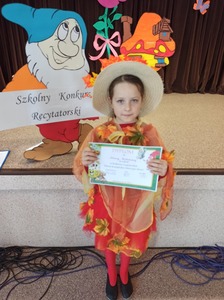 30 maja w Szkole Podstawowej im. Lotników Polskich w Mirosławcu odbył się konkurs recytatorski pn."Maria Konopnicka - Mistrzyni Słowa." Udział w nim wzięło dwoje dzieci z grupy "Motylki". Pawełek Niedźwiedź recytował wiersz pt. "Bocian", Lilianka Radomska recytowała wiersz pt. "Jesienią". Za piękną recytację Pawełek otrzymał od jury wyróżnienie. Gratulujemy!