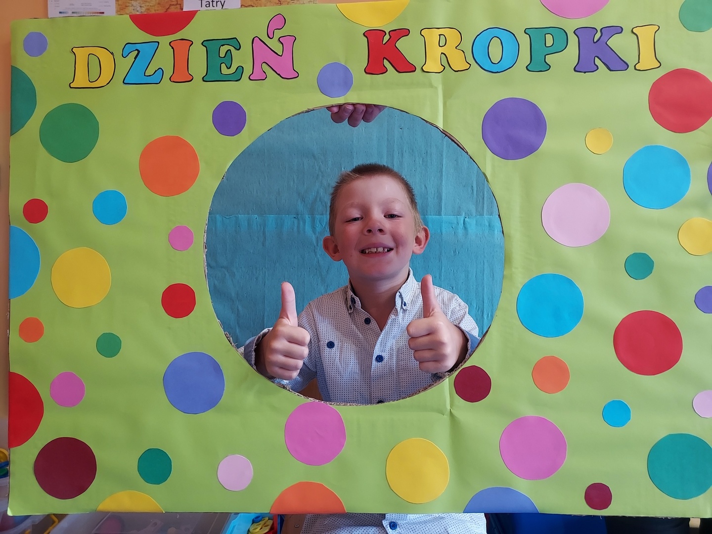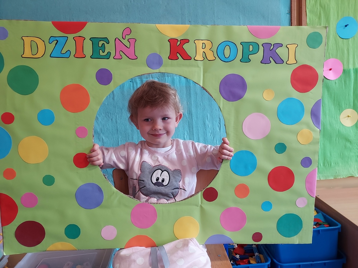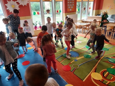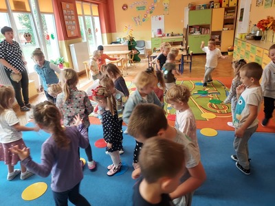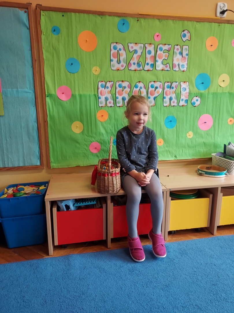 W czwartek, 15 września obchodziliśmy Międzynarodowy Dzień Kropki. Z tego powodu zaprosiliśmy wszystkie dzieci do wspólnej zabawy, zwracając uwagę na to, że każdy ma jakiś talent, wystarczy tylko w siebie uwierzyć. W tym dniu, dzieci przychodząc do przedszkola miały na sobie rozmaite stroje, których elementem przewodnim była kropka. Przedszkolaki w tym dniu bawili się przy piosenkach, szukali par oraz wymyślali rozmaite ćwiczenia. Na koniec wyruszyliśmy na spacer w poszukiwaniu kropek.