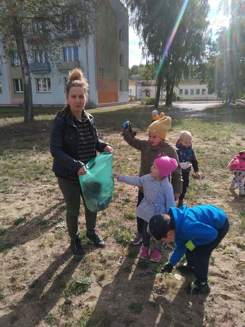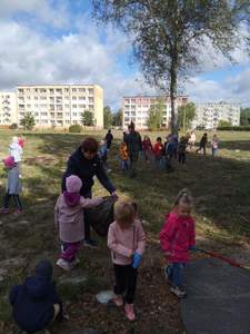 16 września przedszkolaki wzięły udział w  29. Akcji Sprzątania Świata, której głownym założeniem było posprzątanie kawałka naszej gminy. Dzieci bardzo chętnie się włączyły w sprzątanie. Niestety wcale czysto nie było, uzbierano kilka worków śmieci. Była to wspaniała lekcja ekologiczna, której głownym założeniem jest wypracowanie właściwych nawyków dbania o naszą planetę w przyszłości.