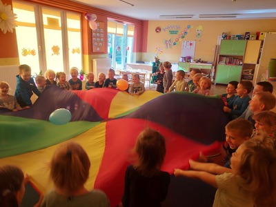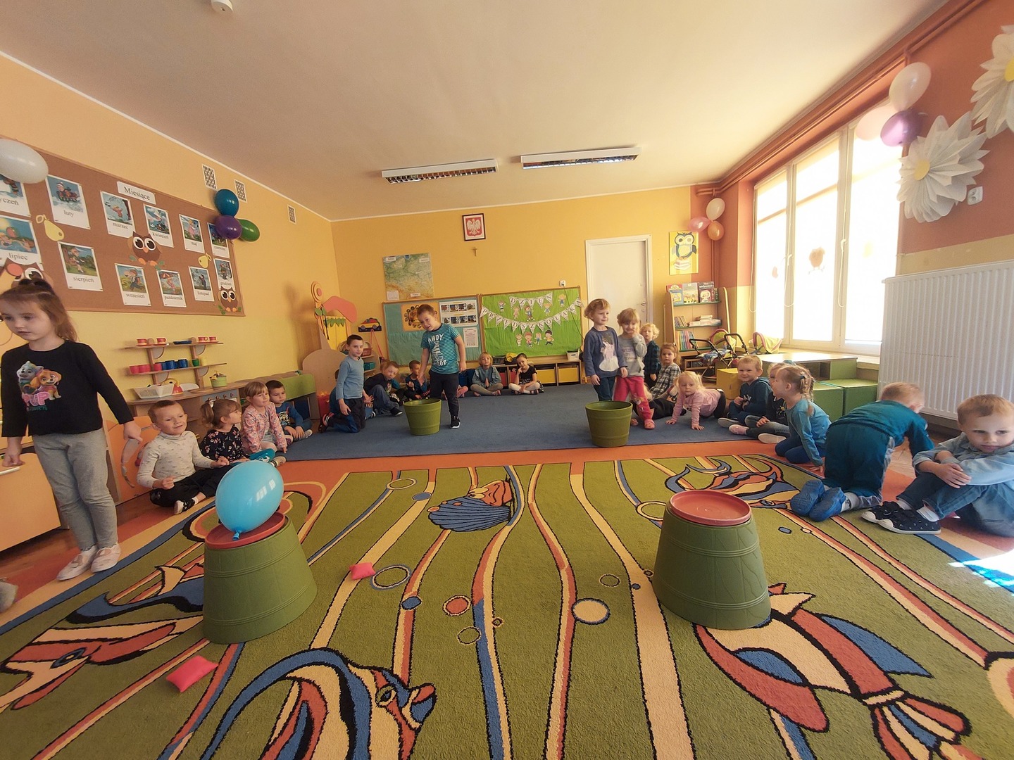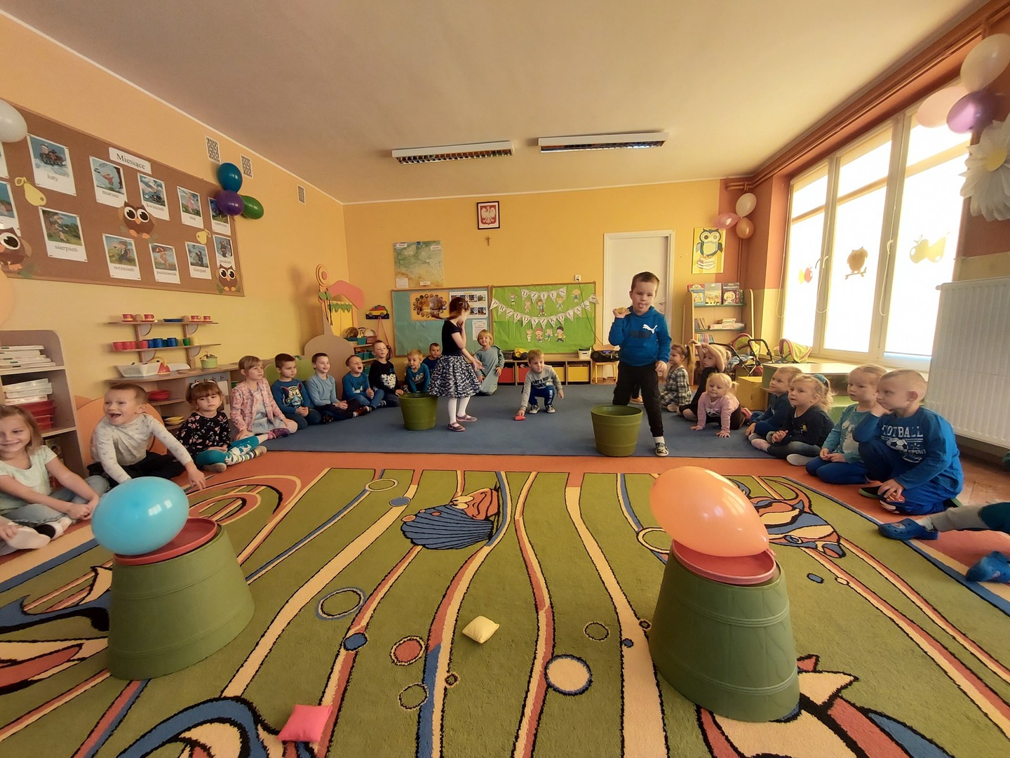 Obchodzony każdego roku  20 września Ogólnopolski Dzień Przedszkolaka to niezwykłe wydarzenie w kalendarzu imprez przedszkolnych. To święto, podczas którego małe przedszkolaki prezentują wszystkim swoje wielkie umiejętności i zdolności. Dzień rozpoczęliśmy śpiewem piosenki "Dziecięce marzenia" w ramach uczestnictwa w akcji "Dzień Przedszkolaka".  Przedszkolaki brały udział w zabawach z elementami sportowej rywalizacji - celowały woreczkiem w balona, skakały po kolorowej ścieżce z  balonem, a także współpracowały przy podawaniu balonika z rąk do rąk. Dzień był pełen radości i uśmiechów.  A my jeszcze raz życzymy przedszkolakom spełnienia marzeń w tym szczególnym dniu.