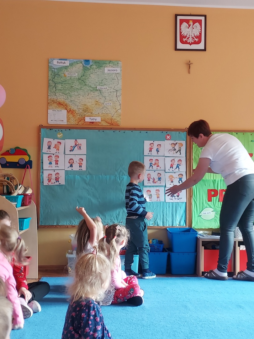 Tego dnia grupy „Biedronek” i „Motylków” spotkały się w sali starszaków, gdzie uczestniczyły w zajęciach mających na celu m. in. budowanie poczucia własnej wartości, lepsze zrozumienie samego siebie i innych, rozpoznawanie właściwych i niewłaściwych zachowań, rozpoznawania i nazywania emocji, naukę radzenia sobie w trudnych sytuacjach bez krzywdzenia innych.