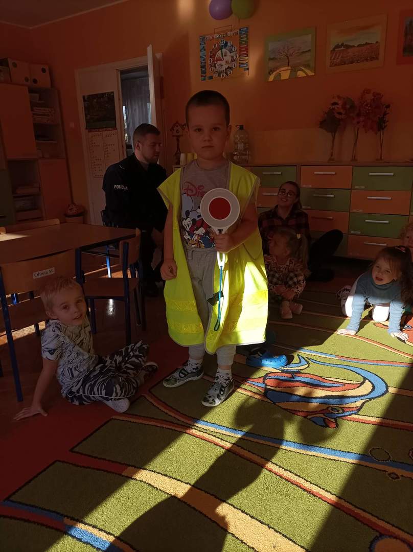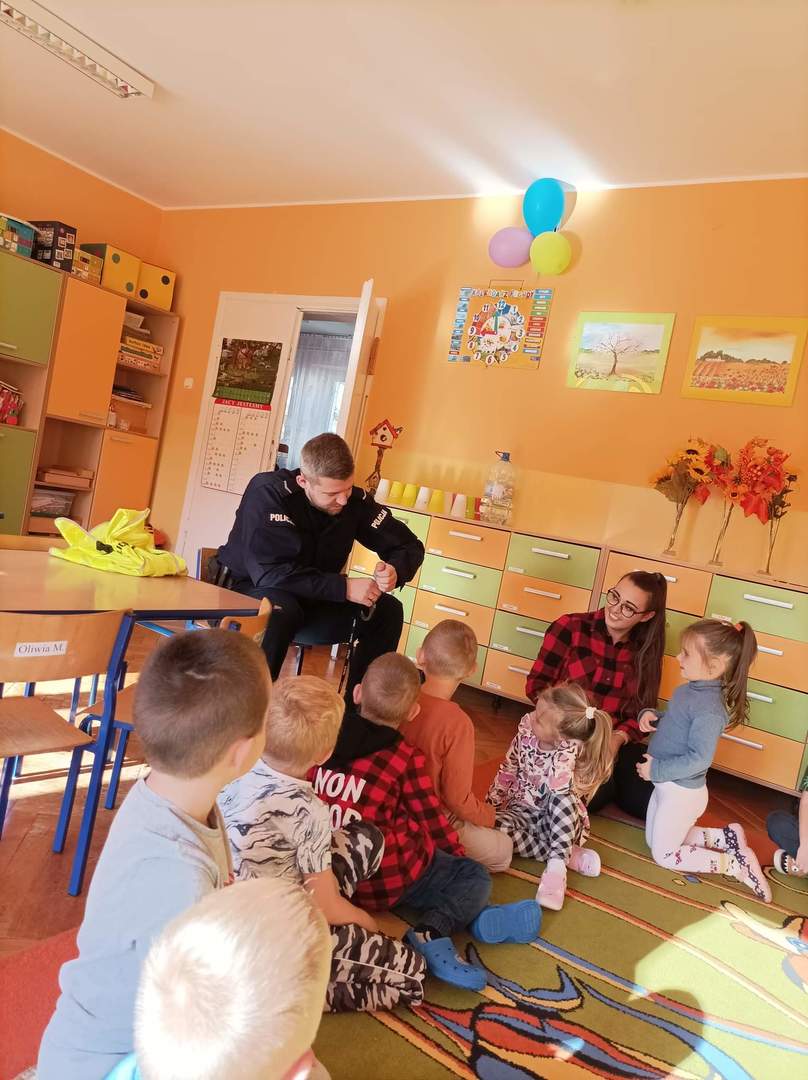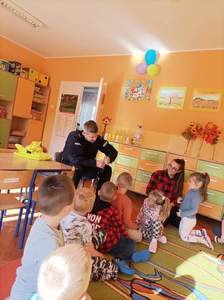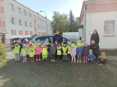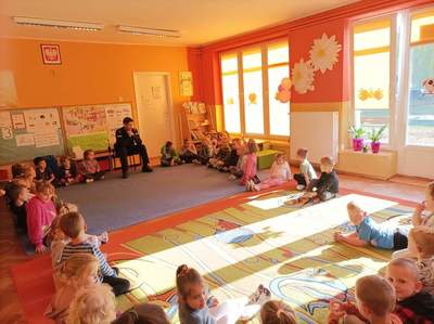 13 października 2022 r. do naszego przedszkola przybyli policjanci z Posterunku Policji w Mirosławcu. Tematem spotkania było utrwalenie z dziećmi zasad ruchu drogowego oraz przypomnienie zasad dotyczących bezpieczeństwa w przedszkolu i w domu.