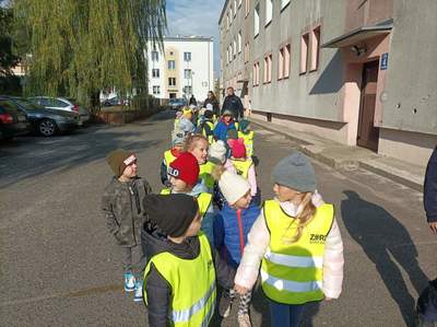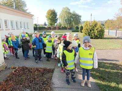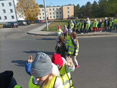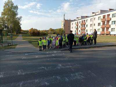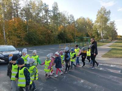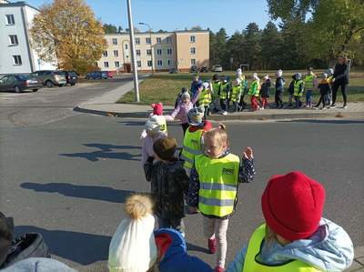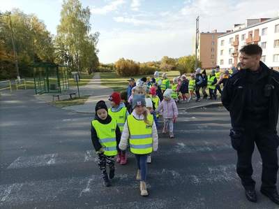 Podczas wspólnego spaceru po osiedlu ćwiczyły przejście przez pasy. Największą atrakcją dla dzieci była możliwość obejrzenia radiowozu policyjnego na terenie przedszkola.
