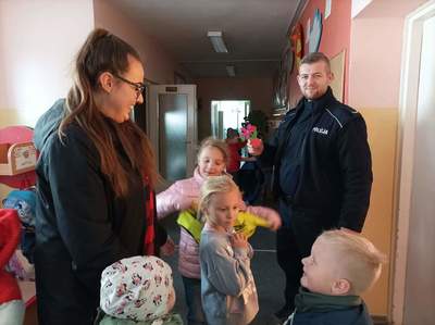 W podziękowaniu za wizytę dzieci wręczyły policjantom drobny upominek.