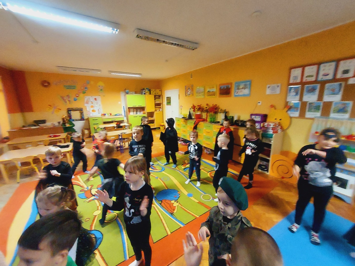 Świętowanie rozpoczęło się podczas rytmiki od tańców i zabaw przy skocznej muzyce. Później przyszedł czas na wróżby. Na podstawie opowiadania pt. „Andrzejki” przedszkolaki zapoznały się z tradycją organizowania wieczorów andrzejkowych. Nie zabrakło przekłuwania serduszek z imionami, by poznać imię przyszłego wybranka / przyszłej wybranki, była „Studnia życzeń”. Dzieci rzucając kostką do gry wróżyły sobie jaki prezent dostaną od Świętego Mikołaja.