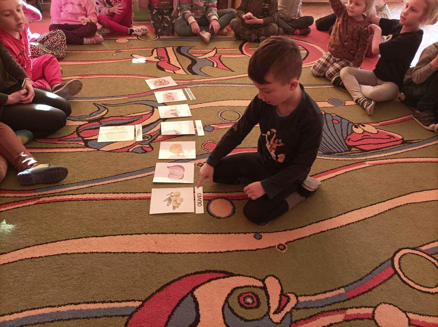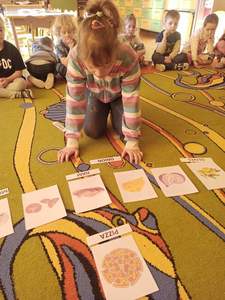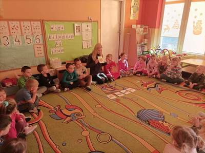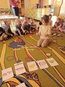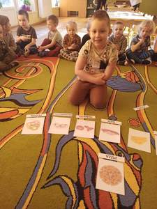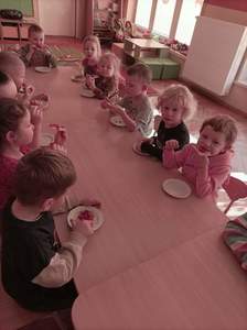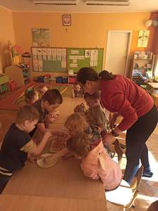 Na samym początku dzieci zapoznały się ze świętem oraz osłuchały się z nazwami składników potrzebnych do przygotowania ciasta w języku angielskim. „Biedronki” i „Motylki” dowiedziały się również, że wymawiane słowo w języku angielskim nie zawsze tak samo brzmi jak się je pisze.