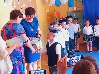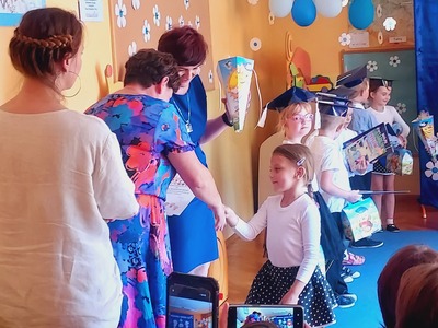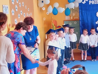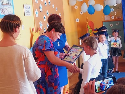 Pani dyrektor Halina Rogowska podziękowała rodzicom za zaangażowanie i współpracę oraz wspólnie z nauczycielkami wręczyła dzieciom dyplomy i upominki życząc wspaniałych i bezpiecznych wakacji. Rodzice również podziękowali pani dyrektor oraz nauczycielkom i pracownikom przedszkola za opiekę nad dziećmi, cierpliwość, wychowanie i edukację.