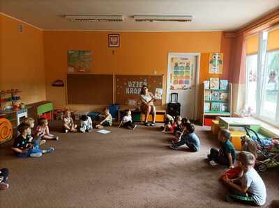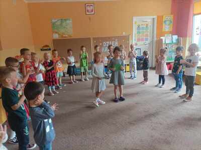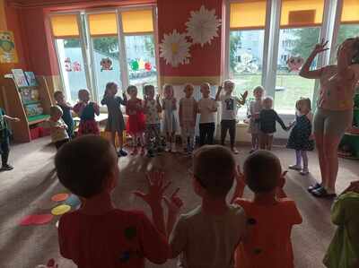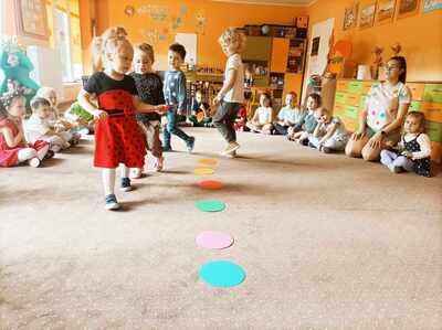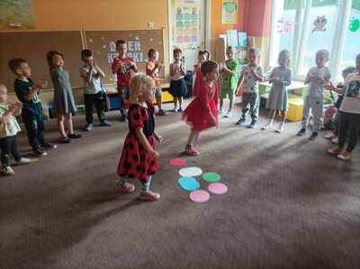 W piątek 15 09.2023 r. Motylki i Biedronki również miały swoje święto pomysłowości, kreatywności, odwagi i odkrywania swoich mocnych stron, tworzenia, działania i dobrej zabawy. Tego dnia nie zabrakło zabaw z kropką w roli głównej, a przedszkolaki miały ubrania pełne kropek. Dzieci wysłuchały opowiadania o Kropce, utrwalały kolory podczas zabaw „Szukamy kropki” i :Pacnij kropkę”, dobierały w pary rozcięte na pół kolorowe kropki. Na zakończenie przedszkolaki wykonały pracę plastyczną.