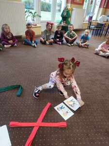 2 października obchodziliśmy w przedszkolu "Międzynarodowy Dzień Bez Przemocy". Tego dnia w grupie "Motylków"odbyła się pogadanka  na temat tego czym jest przemoc. Dzieci poznały sposoby radzenia sobie w trudnych sytuacjach bez stosowania przemocy. Podczas zabaw przedszkolaki uczyły tolerancji, rozpoznawania emocji, jak być miłym.  Starszaki na podstawie przygotowanych obrazków omawiały pożądane i niepożądane zachowania. Na koniec zapozowały do zdjęcia okazując sobie wzajemny szacunek.