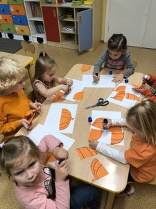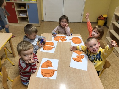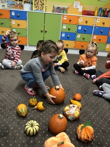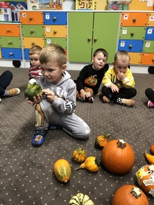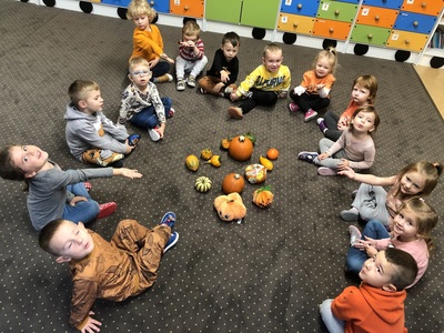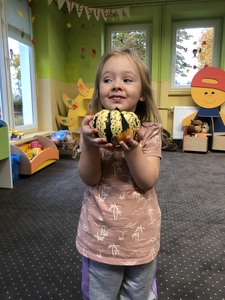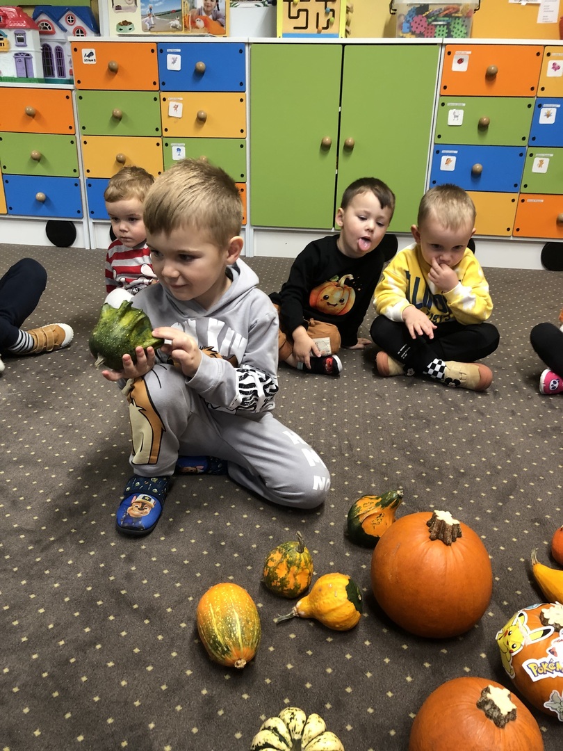 31 października w grupie maluszków górowały dynie. Dzieci poznały wielką różnorodność tych warzyw oraz ich walory kulinarne i nie tylko. Największą frajdą dnia były zabawy dyniowe takie jak slalom, kręgle, ciepło-zimno. Na koniec każde dziecko ułożyło swoją dynię (puzzle) co nie było takie proste. Bardzo przyjemnym momentem była słodka niespodzianka w postaci dyniowego lizaczka, podarowana przez koleżankę Polę🙂 Dziękujemy😘