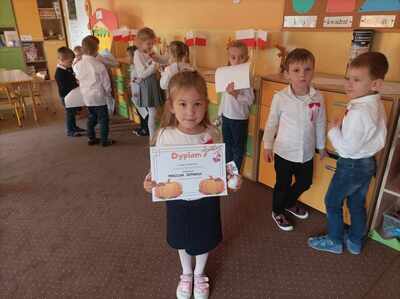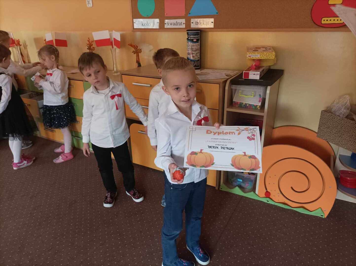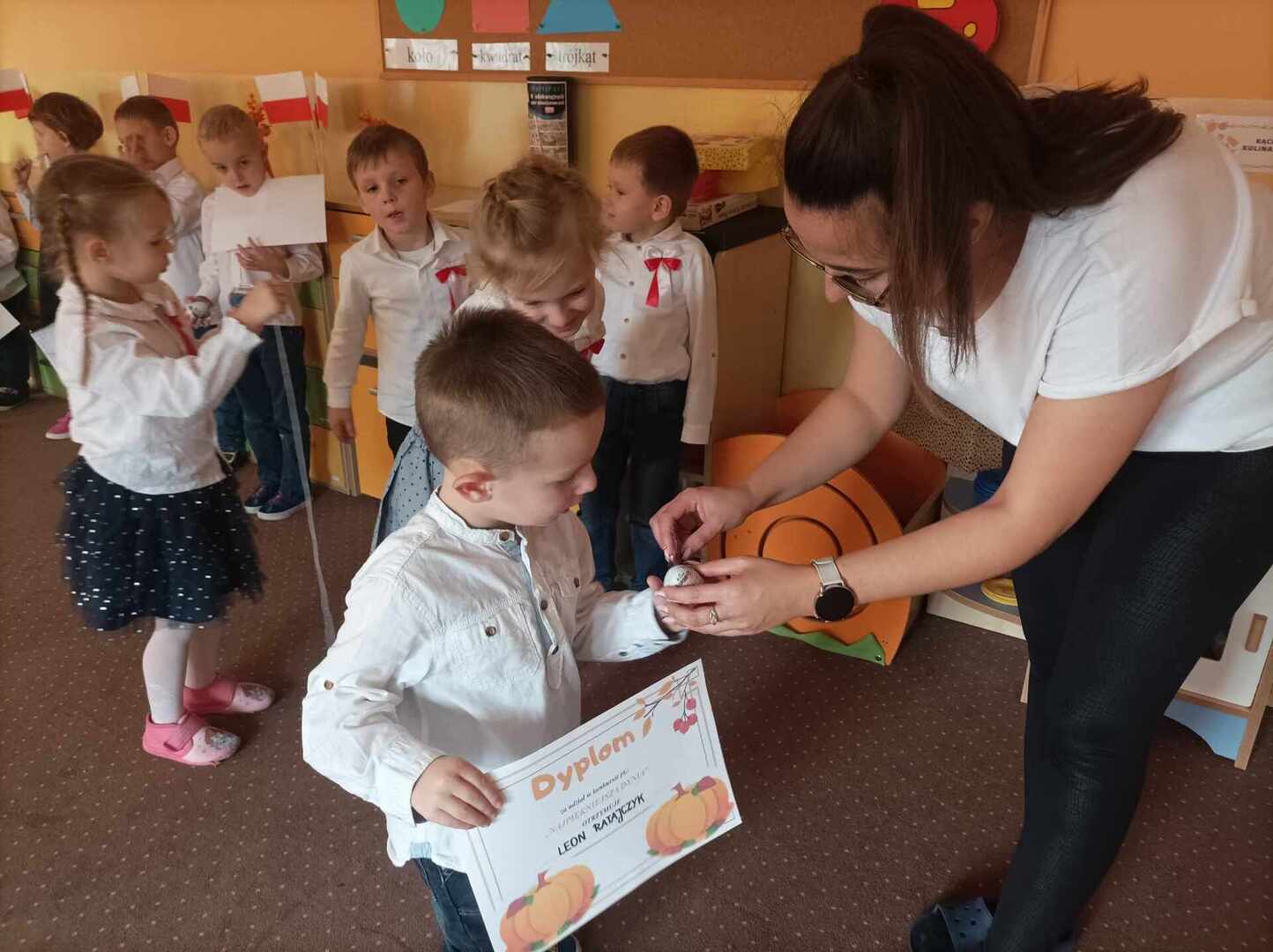 W piątek, 10.11.2022 r. w przedszkolu odbyło się rozstrzygnięcie konkursu pt.: „Najpiękniejsza dynia”. W konkursie udział wzięły dzieci z młodszej i starszej grupy. Na wystawie w przedszkolu pojawiły się dynie, każda z nich była inna, wyjątkowa. Wybór był trudny, gdyż oceniałyśmy aż 19 prac! Nagrody za pierwsze drugie i trzecie miejsce zakupiła p. Dyrektor. Niektóre prace, które były bardzo pomysłowe zostały wyróżnione. Oprócz nagród rzeczowych  każde dziecko otrzymało coś słodkiego oraz dyplom za udział. I miejsce zajął A. Rymarski, II miejsce zajął S. Piotrowski, III miejsce zajął M. Wojteczko. Wyróżnienia otrzymali: J. Misiura, M. Piłatowska, T. Mejer oraz A. Ratajczyk.  Gratulujemy wszystkim dzieciom i zachęcamy do udziału w kolejnych konkursach.