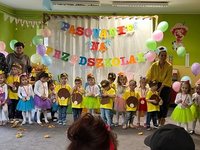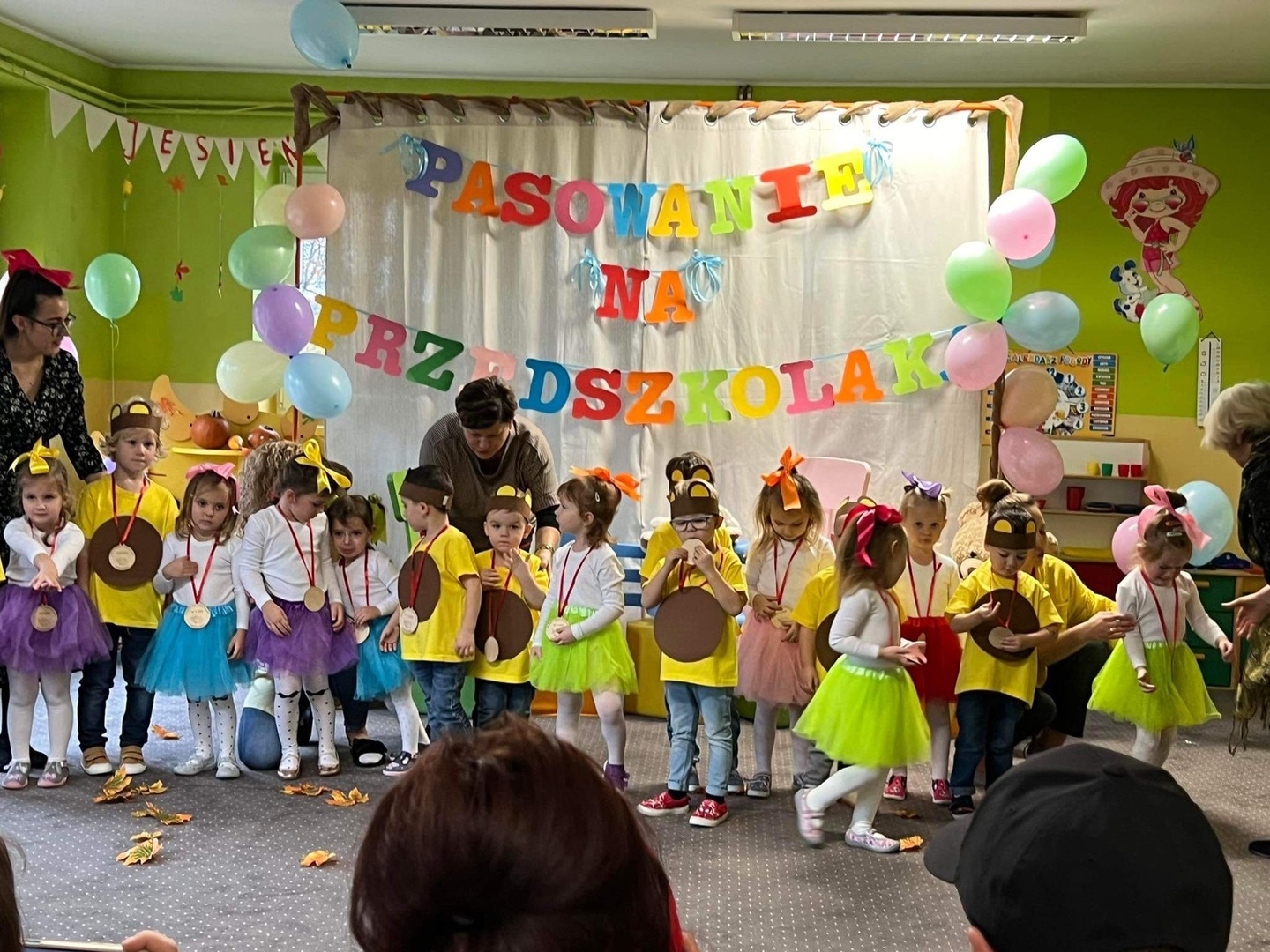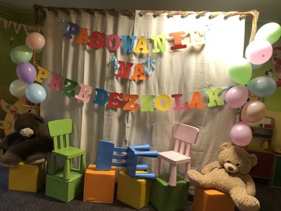 Pasowanie na przedszkolaka to wyjątkowa uroczystość, która w naszym przedszkolu odbyła się 15 listopada. Od samego rana trwały przygotowania, a w sali gromadzili się goście. Maluchy pięknie  zaprezentowały się w roli Misiów i Lal. Po części artystycznej nastąpił akt pasowania, czyli dotknięcie ramienia każdego przedszkolaka ,, zaczarowaną kredką''😉 przez Panią Dyrektor. Dla przedszkolaków było to wielkie przeżycie, a dla rodziców powód do dumy i zadowolenia ze swoich pociech.