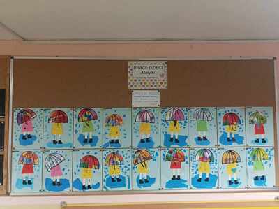Motywem przewodnim były zabawy z deszczem. Dzieci zaprezentowały instrumentację piosenki „Deszczowa orkiestra”, ilustrowały ruchem piosenkę „Deszczowy berek”, odtwarzały deszczowe rytmy. Podczas zabawy „Kap, kap, kap, kroplę deszczu złap” doskonaliły umiejętność przeliczania w zakresie 6, utrwaliły cyfry od 1 do 6. Utrwalały również poznane do tej pory litery, ćwiczyły umiejętność wyodrębniania głoski w nagłosie oraz dokonywania syntezy głoskowej wyrazów.