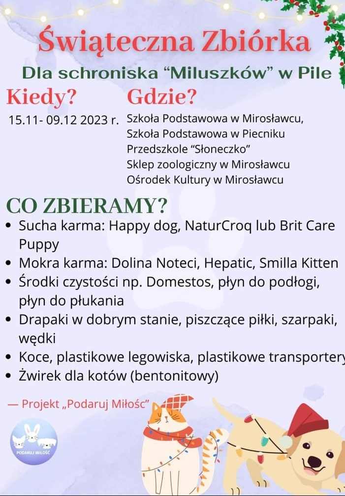 W bieżącym roku szkolnym nasze przedszkolaki wzięły udział w Świątecznej Zbiórce dla schroniska „Miluszków” w Pile.