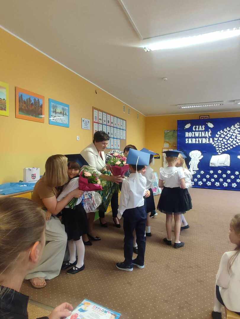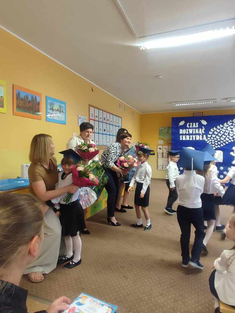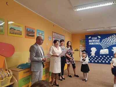 Pani dyrektor Halina Rogowska podziękowała rodzicom za zaangażowanie i współpracę oraz wspólnie z nauczycielkami wręczyła dzieciom dyplomy i upominki życząc wspaniałych i bezpiecznych wakacji. Rodzice również podziękowali pani dyrektor oraz nauczycielkom i pracownikom przedszkola za opiekę nad dziećmi, cierpliwość, wychowanie i edukację.