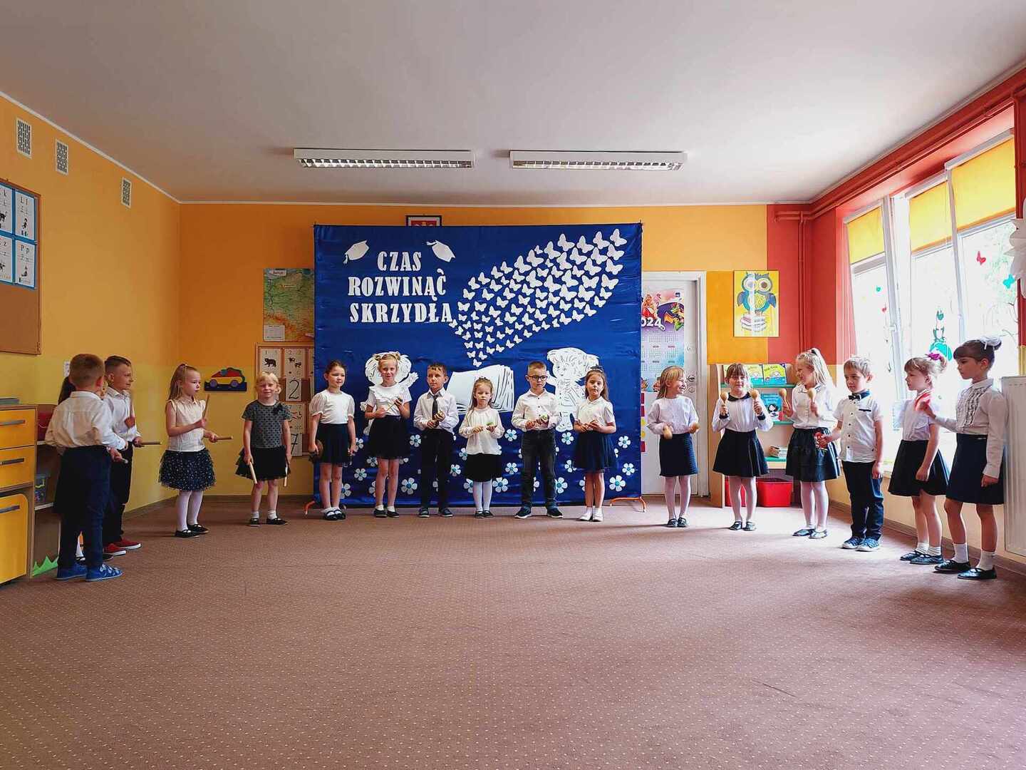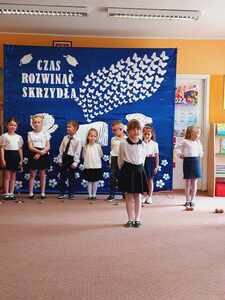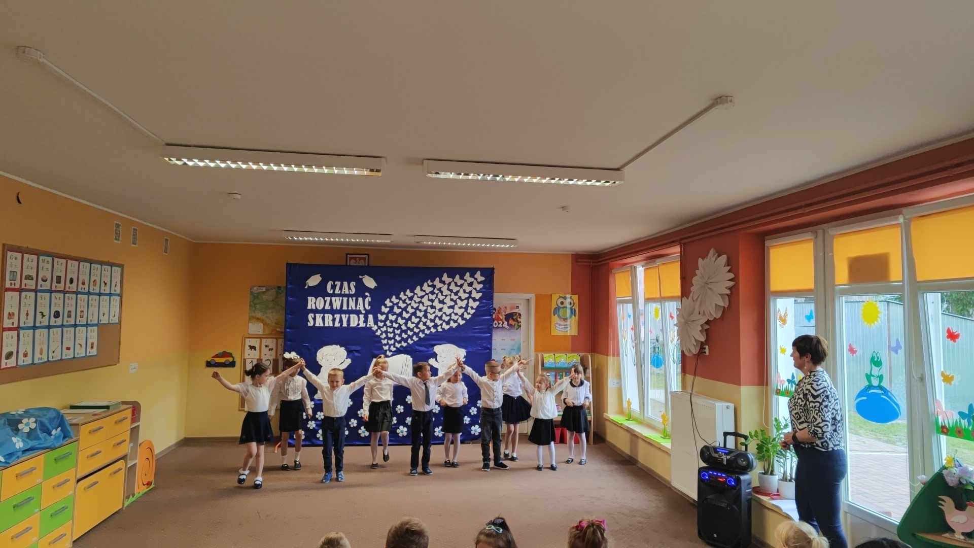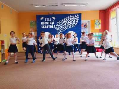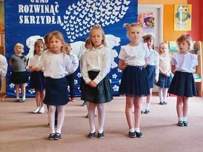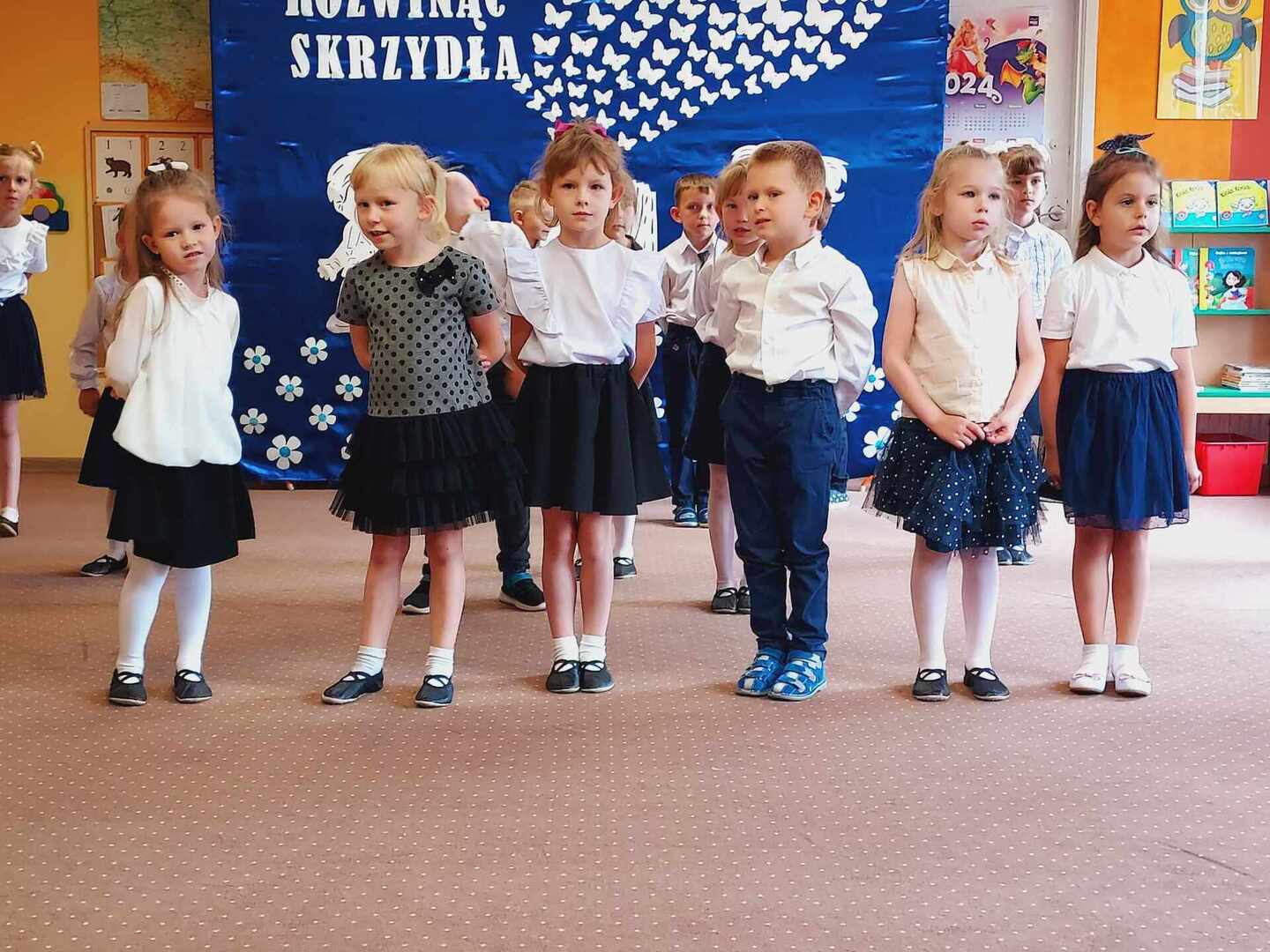 Dzieci podczas  występu artystycznego zaprezentowały swoje umiejętności wokalne, taneczne i recytatorskie. W części artystycznej nie zabrakło wierszy, piosenek, tańców oraz podziękowań wszystkim pracownikom przedszkola i rodzicom za trud włożony w wychowanie i naukę. Część artystyczna została uwieńczona polonezem. Starszaki stanęły na wysokości zadania i swoim występem wzbudziły wiele emocji. Za piękny występ zostały nagrodzone gromkimi brawami oraz obdarowane słodkościami.