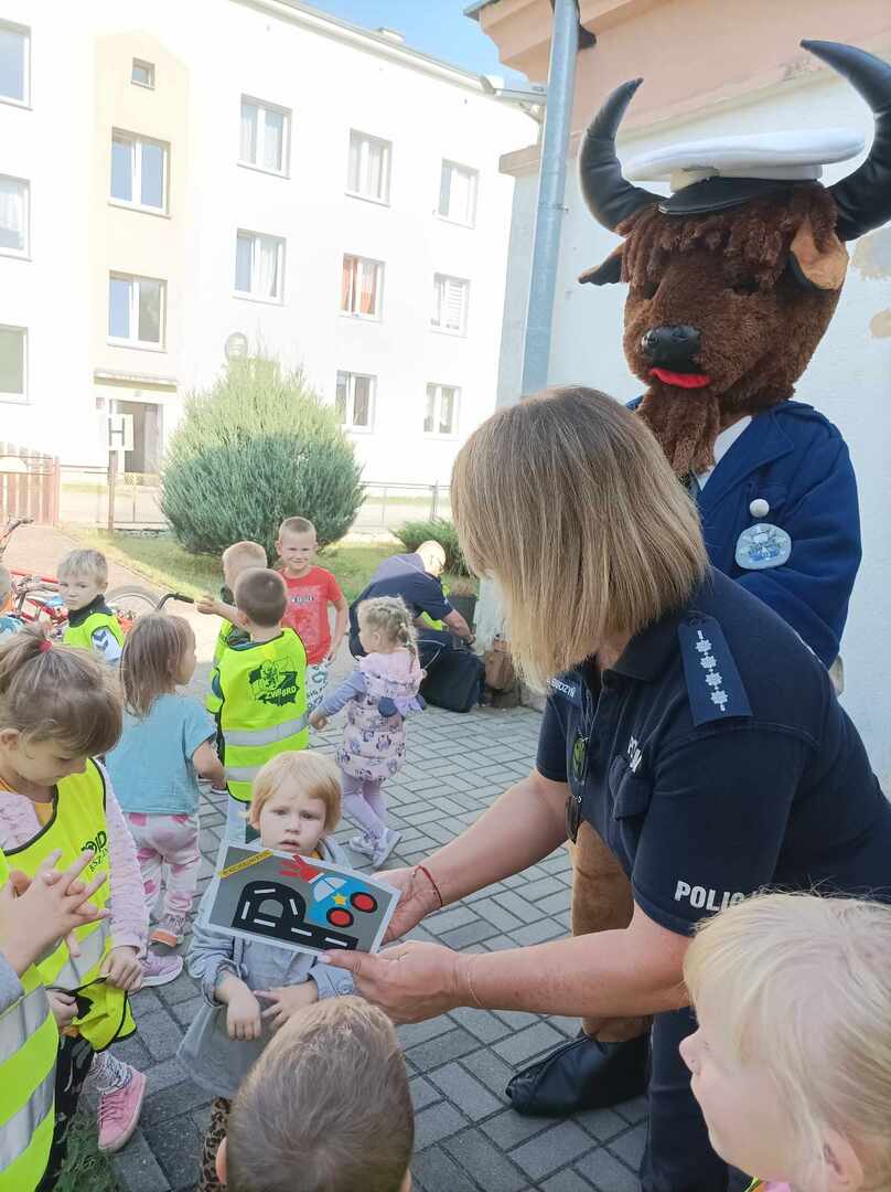 Spotkanie przebiegło w miłej i edukacyjnej atmosferze, a dzieci chętnie uczestniczyły w praktycznych ćwiczeniach. Dzięki temu wydarzeniu przedszkolaki wzbogaciły swoją wiedzę o bezpieczeństwie na drodze, co z pewnością przyczyni się do ich większej ostrożności i świadomości w codziennym poruszaniu się do przedszkola.