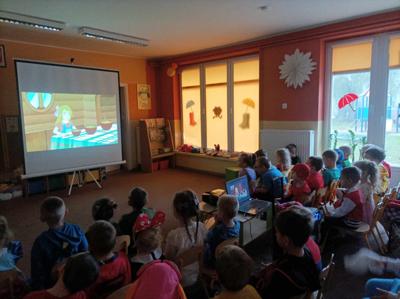 Na zakończenie tego bajkowego dnia nasi podopieczni obejrzeli dwie klasyczne bajki: "Wilk i siedem koźlątek" oraz "Złotowłosa i trzy niedźwiadki". Przedszkolaki z uwagą śledziły przygody bohaterów, ucząc się przy tym ważnych wartości.