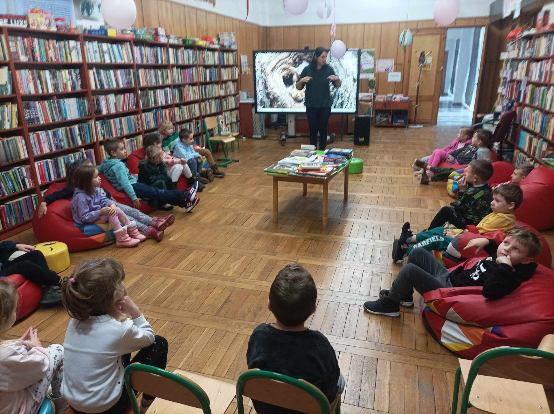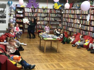 Pani Monika wprowadziła dzieci w świat książek i opowieści. Na początku spotkania przeczytała książkę wprowadzając dzieci w magiczny świat literatury. Po lekturze przedszkolaki z entuzjazmem oglądały różnorodne książeczki dostępne w bibliotece, poznając ich barwne ilustracje i ciekawe historie.