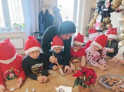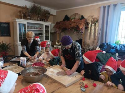W poniedziałek, 2 grudnia 2024 roku, grupa „Motylki” uczestniczyła w warsztatach piernikowych, które odbyły się na świetlicy w Bronikowie.