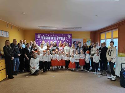 Uroczystość zakończyła się wspólnym zdjęciem wszystkich uczestników, które uwieczniło atmosferę radości i świątecznego ciepła. Występ grupy „Motylki” dostarczył niezapomnianych wrażeń i wprowadził piękny, świąteczny nastrój, który na długo pozostanie w pamięci.