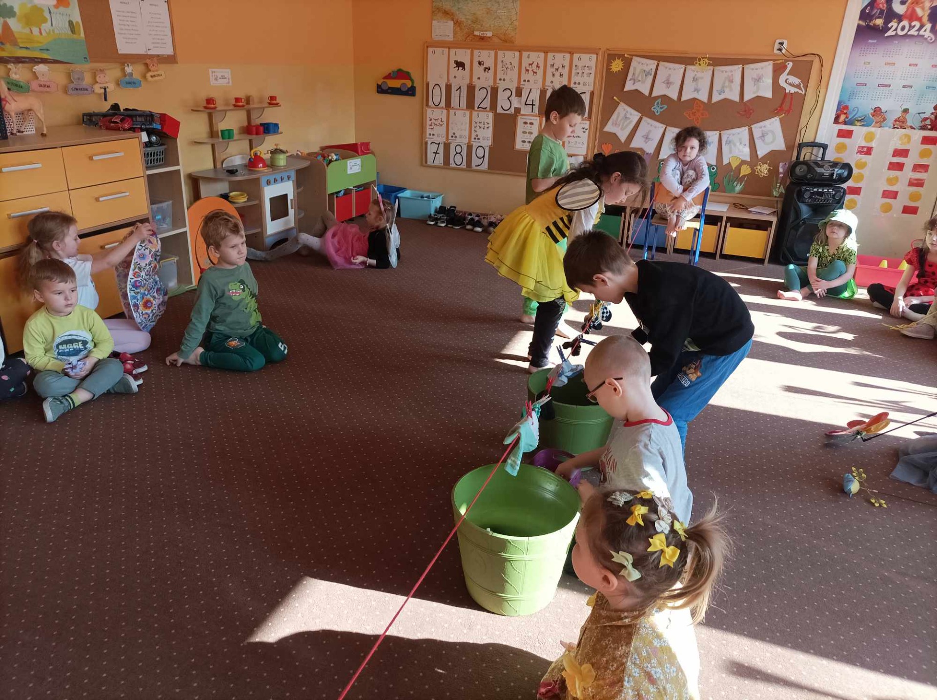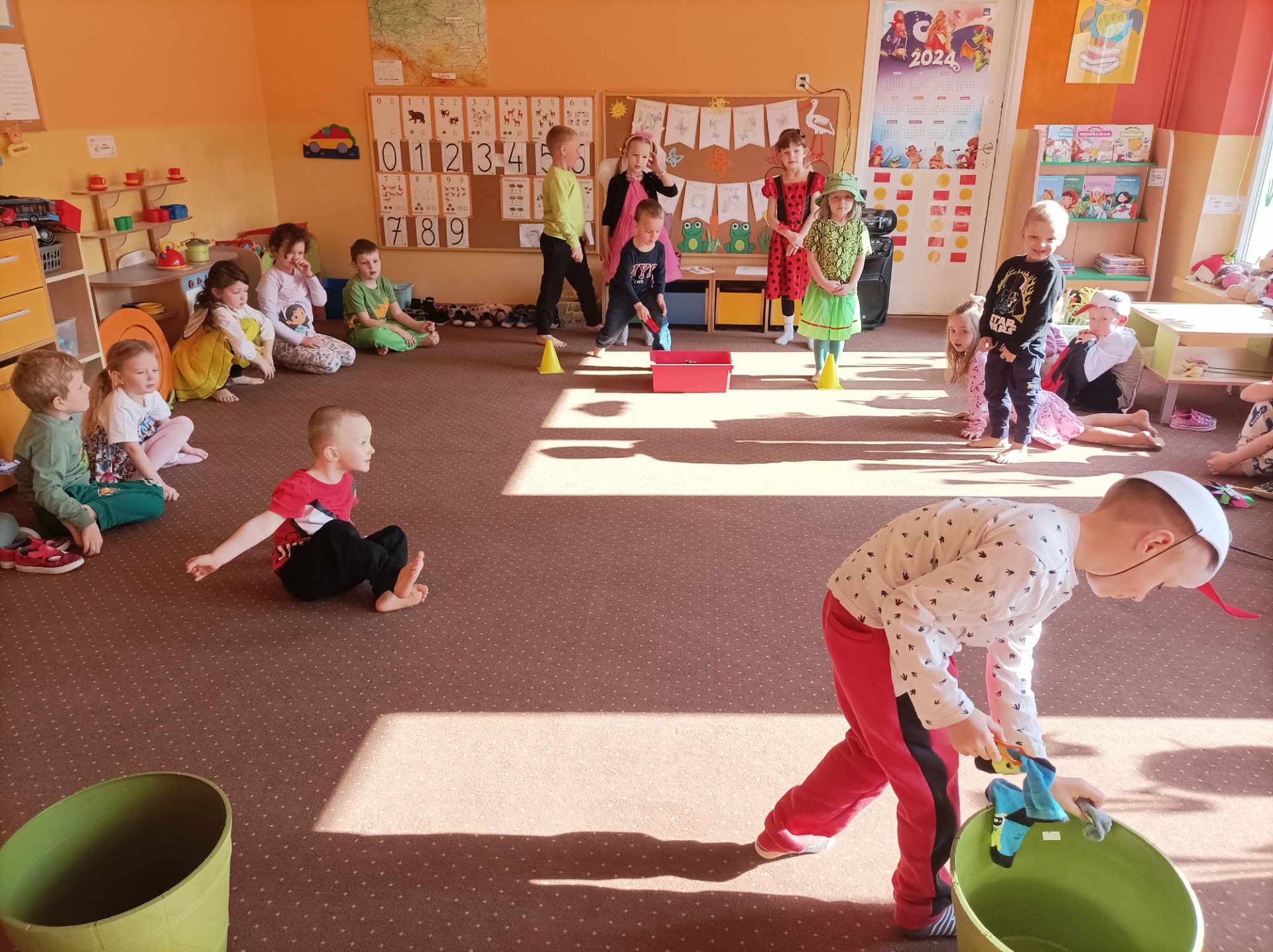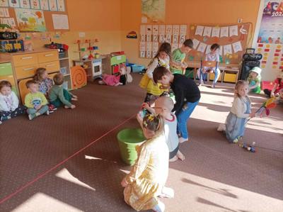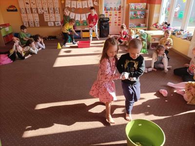 Dzieci wzięły udział w różnorodnych skarpetkowych zawodach, takich jak przenoszenie skarpetek za pomocą szczypców oraz wieszanie ich na sznurku. Zabawy dostarczyły wielu emocji i radości. Powitanie wiosny świętowaliśmy radosnymi zabawami i wiosennymi piosenkami, które wprowadziły wszystkich w znakomity nastrój.