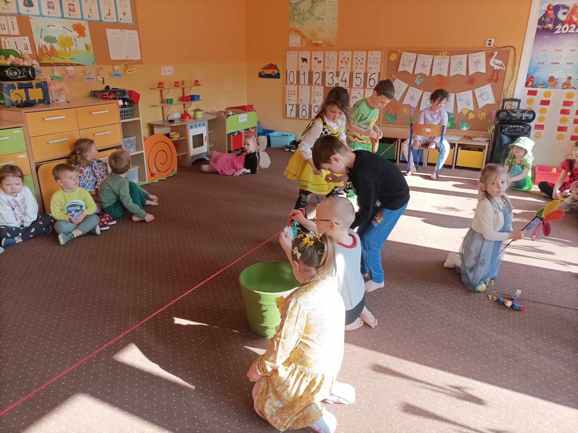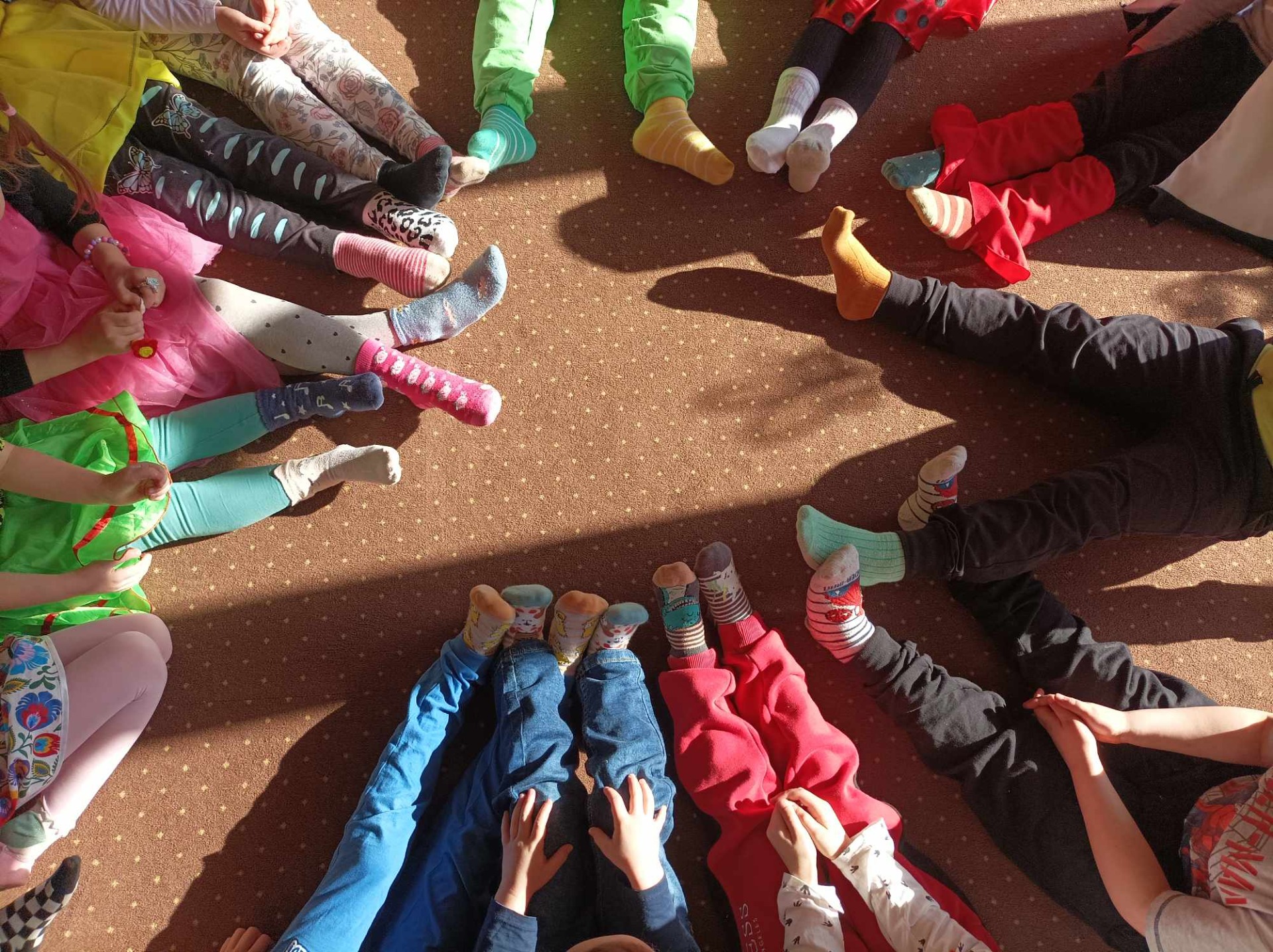 Z okazji nadejścia wiosny przedszkole zamieniło się w prawdziwie bajkowy ogród. Dzieci przebrane za biedronki, żabki, motylki, pszczółki oraz bociany stworzyły niezwykły, wiosenny klimat. Starszaki dodatkowo założyły skarpetki nie do pary, co nawiązywało do obchodzonego tego dnia Święta  Kolorowej Skarpetki. Przedszkolaki dowiedziały się, że to wydarzenie ma na celu zwrócenie uwagi na osoby z zespołem Downa oraz promowanie różnorodności i akceptacji.
