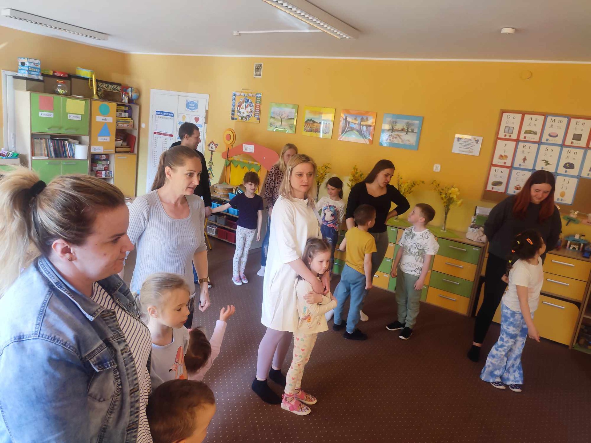 Rodzice mieli możliwość obserwowania swoich dzieci podczas pracy. W razie potrzeby wspierali je i korygowali wykonanie zadań, a także aktywnie włączali się we wspólne zabawy – szczególnie muzyczno-ruchowe, które sprawiły dzieciom wiele radości.