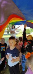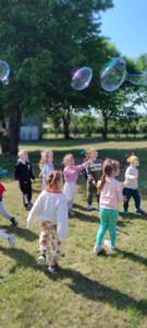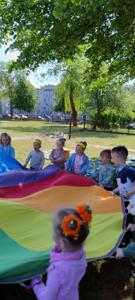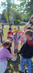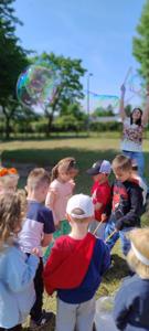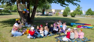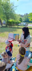Na początku spotkania, dzieci zgromadziły się wokół pani Moniki na kocykach rozłożonych na trawie. Bibliotekarka  wprowadziła maluchy w tematykę opowiadania ,,Gaja w opałach''. Dzieci z uwagą słuchały barwnej opowieści o przygodach małej pszczoły Gai, która wraz z przyjaciółmi starała się uratować łąkę przed zagrożeniem ze strony zanieczyszczeń. Pani Monika w prosty i przystępny sposób wyjaśniła dzieciom, że te małe owady są kluczowe dla zapylania roślin, a tym samym dla produkcji żywności. Po zakończeniu czytania nie zabrakło również zabaw, które były doskonałym dopełnieniem dnia. Dzieci wzięły udział w zabawach ruchowych z chustą animacyjną, co pozwoliło im spożytkować nagromadzoną energię. Kolejną atrakcją była gonitwa za bańkami mydlanymi, które mieniąc się w promieniach słońca , wprowadziły magiczny nastrój. Dzieci biegnąc za lekkimi jak piórko bańkami, mogły poczuć się jak małe pszczółki , które z ogromnym zaangażowaniem próbują dosięgnąć barwnych kul. Inicjatywa ,,Cała Polska czyta dzieciom'', której częścią była dzisiejsza akcja, ma na celu propagowanie idei wspólnego czytania od najmłodszych lat. Jest to szczególnie ważne w dobie cyfryzacji, gdzie książki coraz częściej są zastępowane przez ekrany komputerów i telefonów.