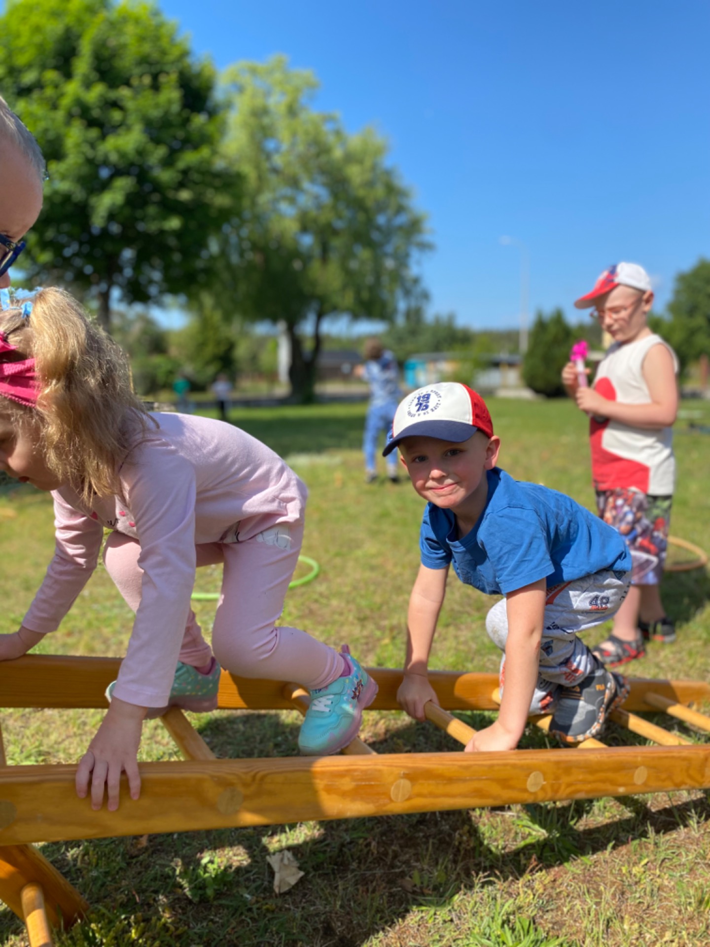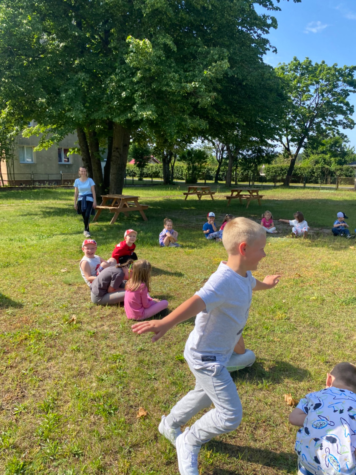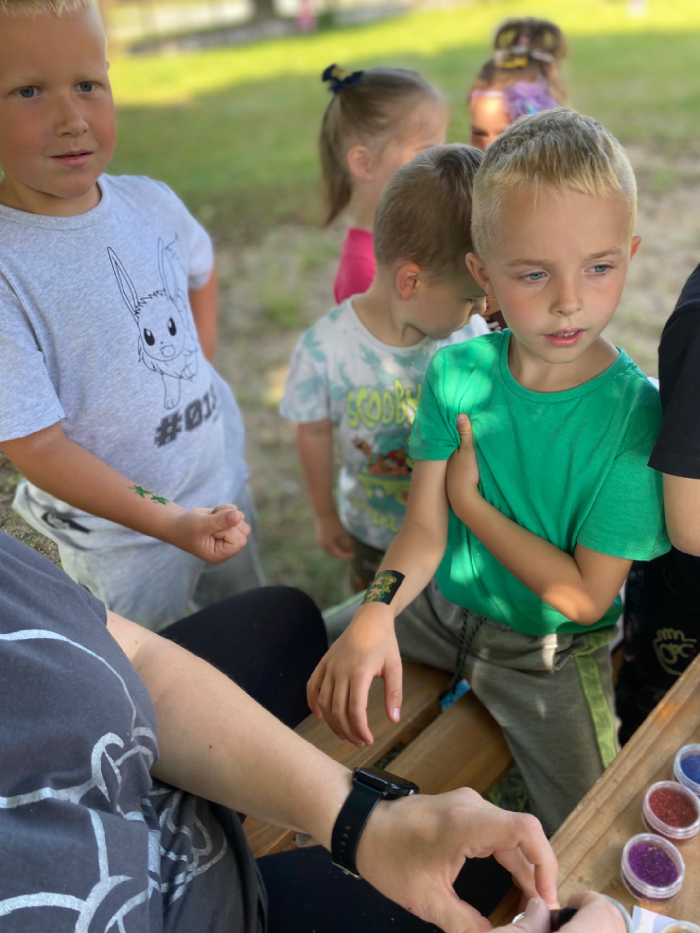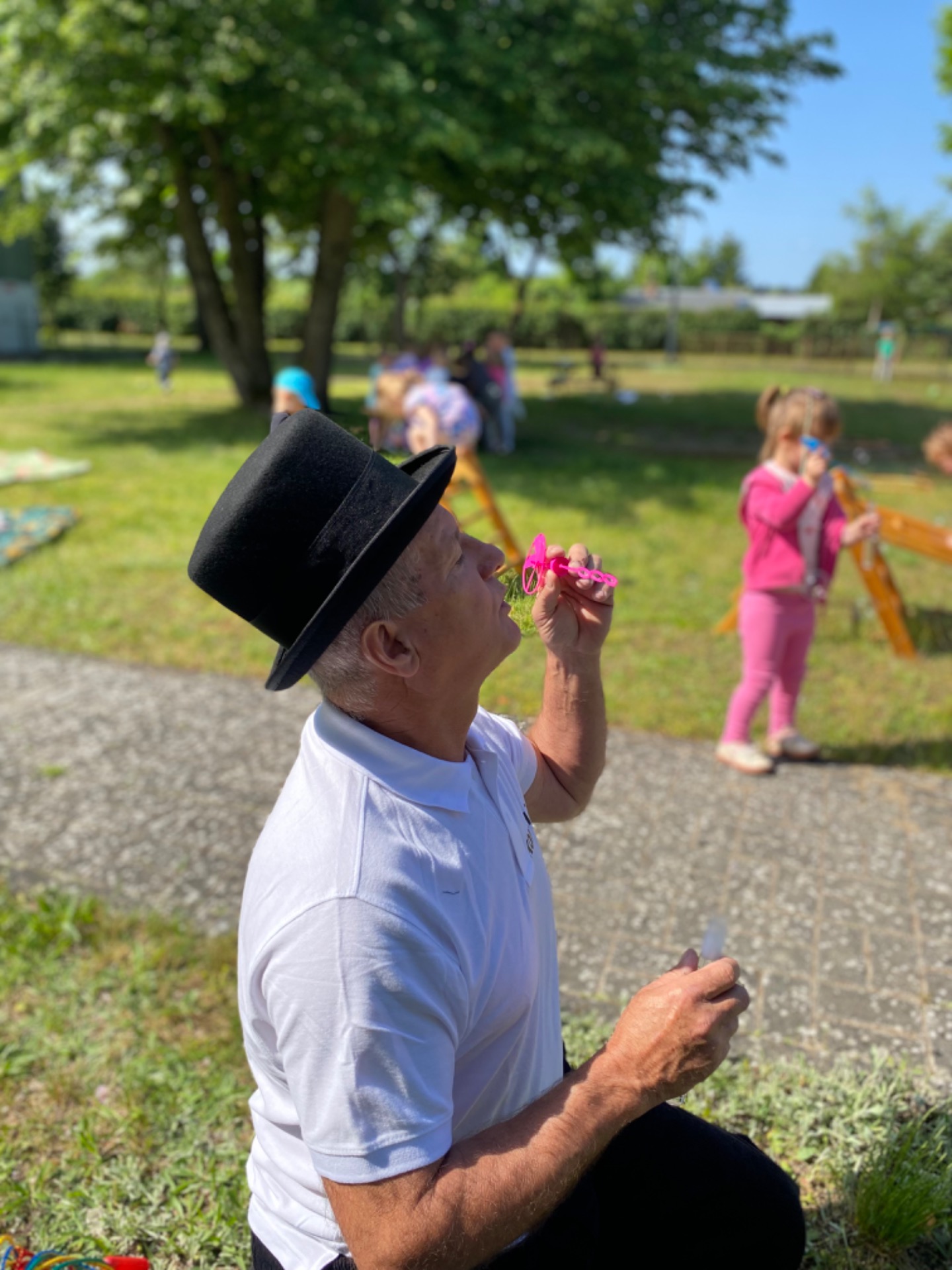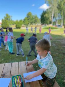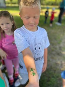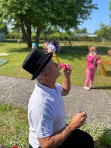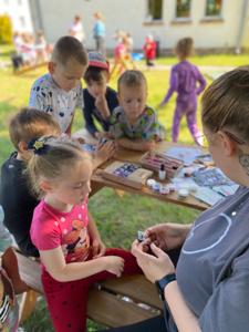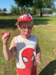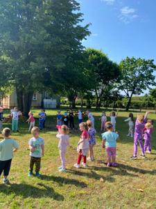 Tegoroczny Dzień Dziecka spędziliśmy na naszej przedszkolnej polanie pełnej śmiechu, zabawy i słońca. Były kolorowe bańki mydlane, tatuaże i emocjonujące zabawy zręcznościowe oraz dużo wygibasów na trawie. Nie zabrakło też chwili na odpoczynek.Dzieci relaksowały się na kocykach , zajadając się pysznymi lodami oraz słodyczami, które w prezencie przyniósł kominiarz Pan Leszek Mazur. Całość zakończyła się prawdziwą dziecięcą dyskoteką przy największych hitach. Było tanecznie , wesoło i bardzo kolorowo.