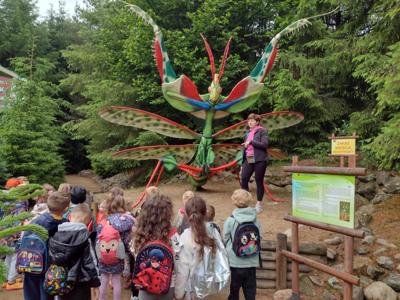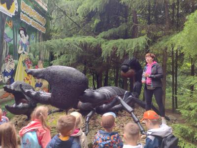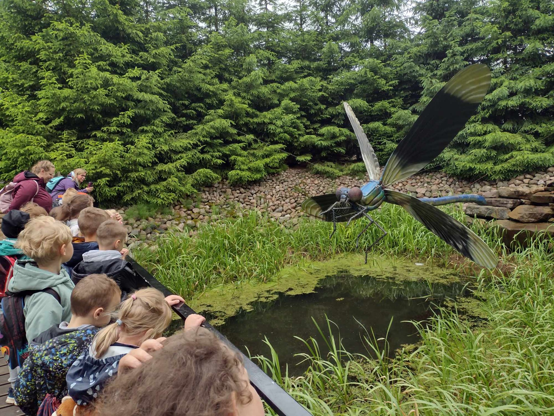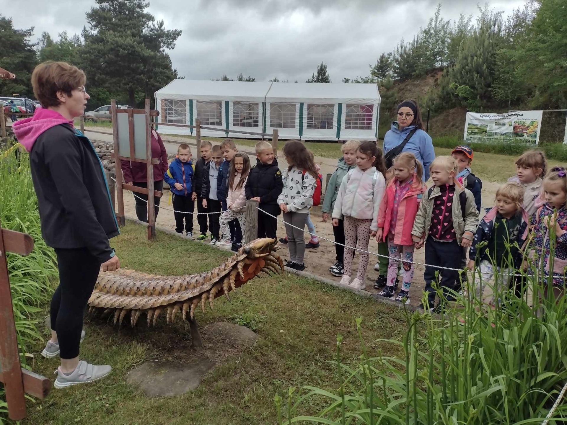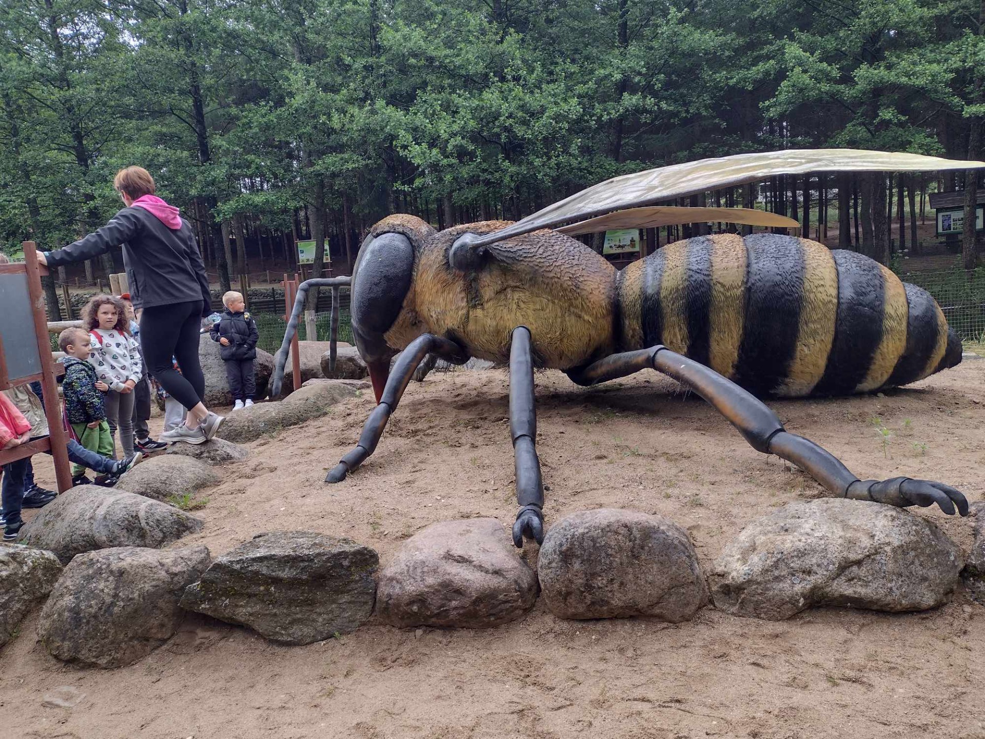 Po dotarciu na miejsce rozpoczęliśmy spacer ścieżką dydaktyczną, podczas którego dzieci mogły podziwiać ogromne modele owadów. Przewodniczka opowiadała wiele interesujących ciekawostek przyrodniczych na temat każdego z nich, co wzbudziło duże zainteresowanie i zachęcało dzieci do zadawania pytań.