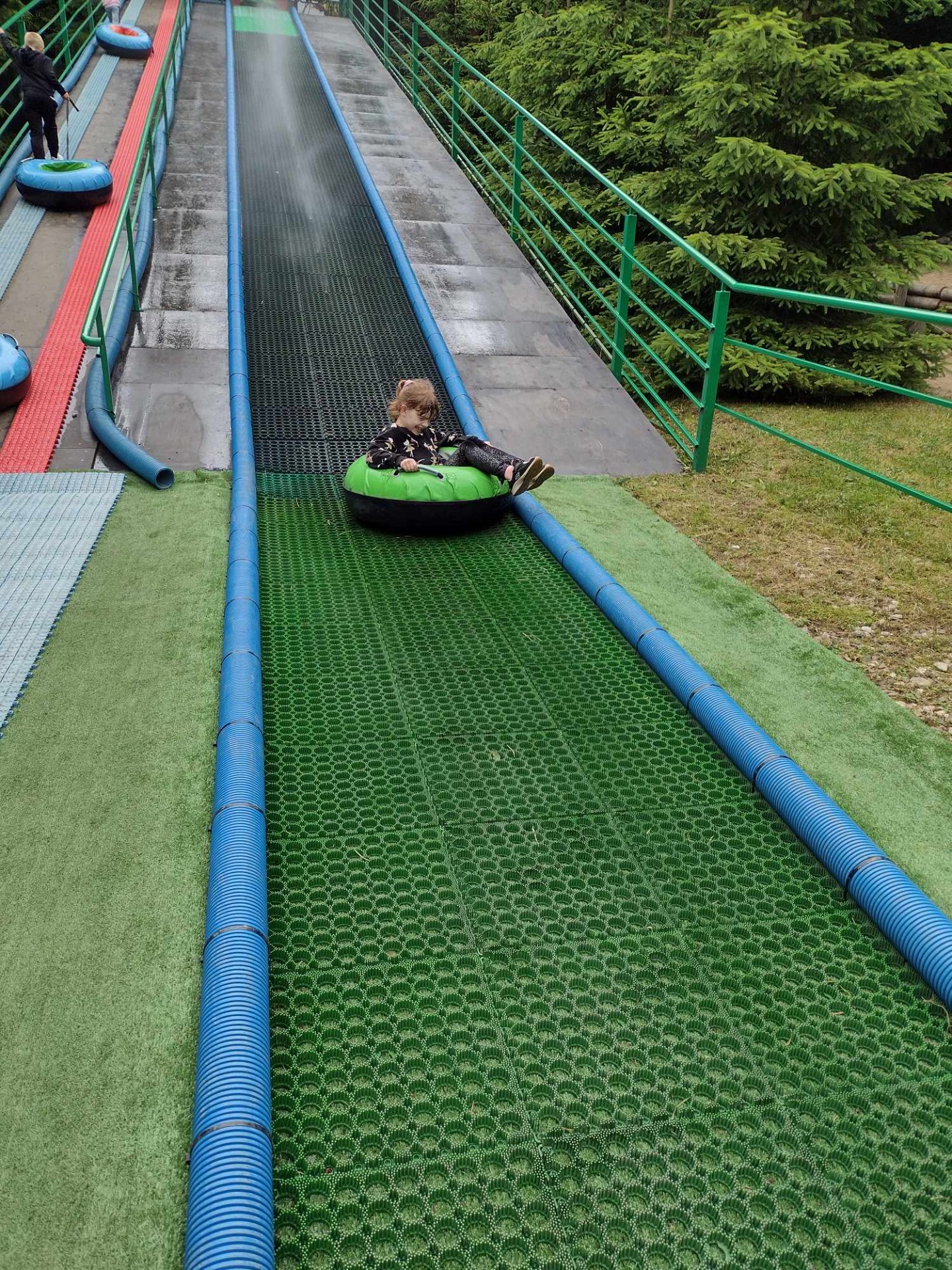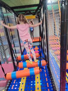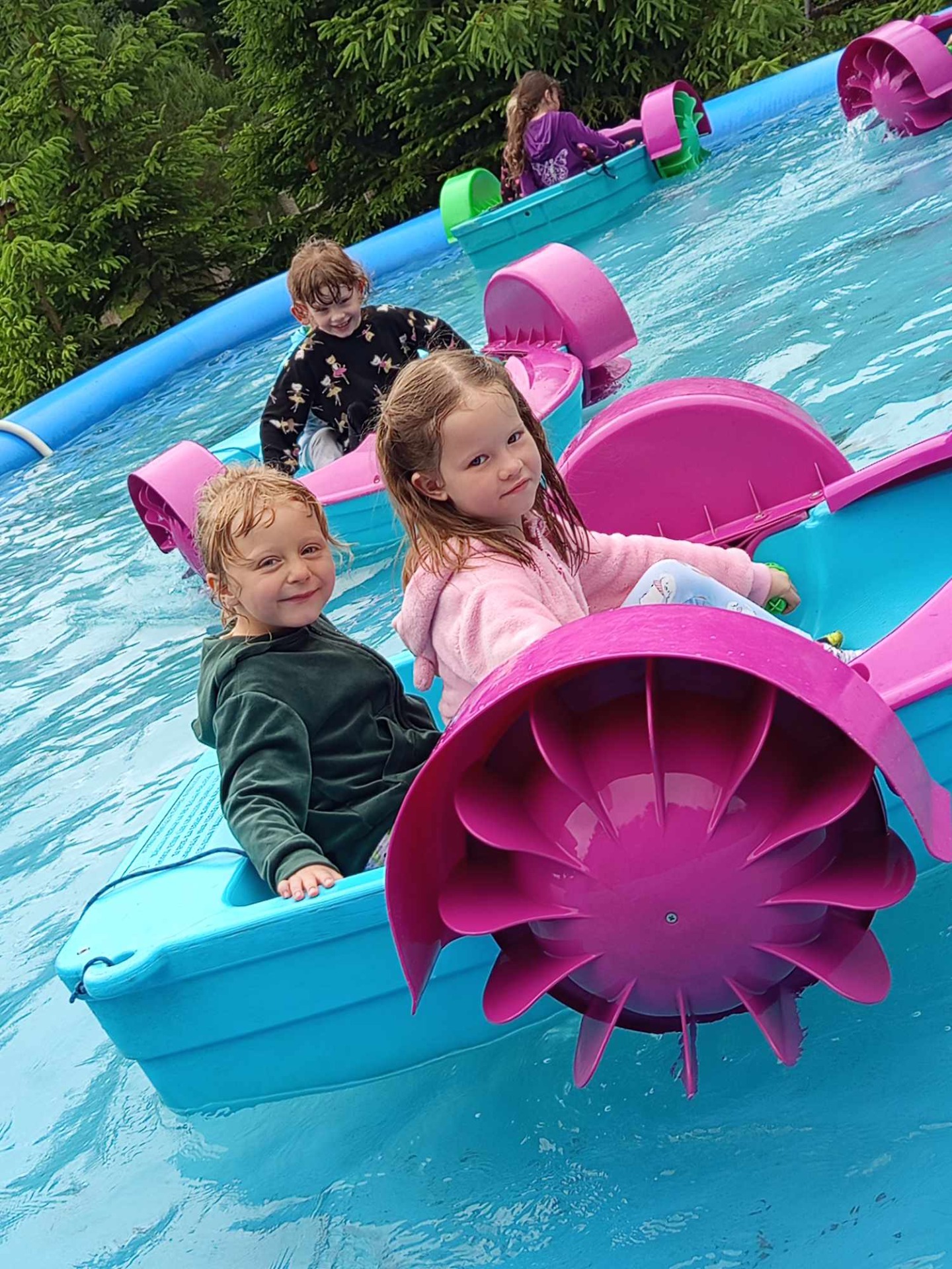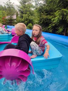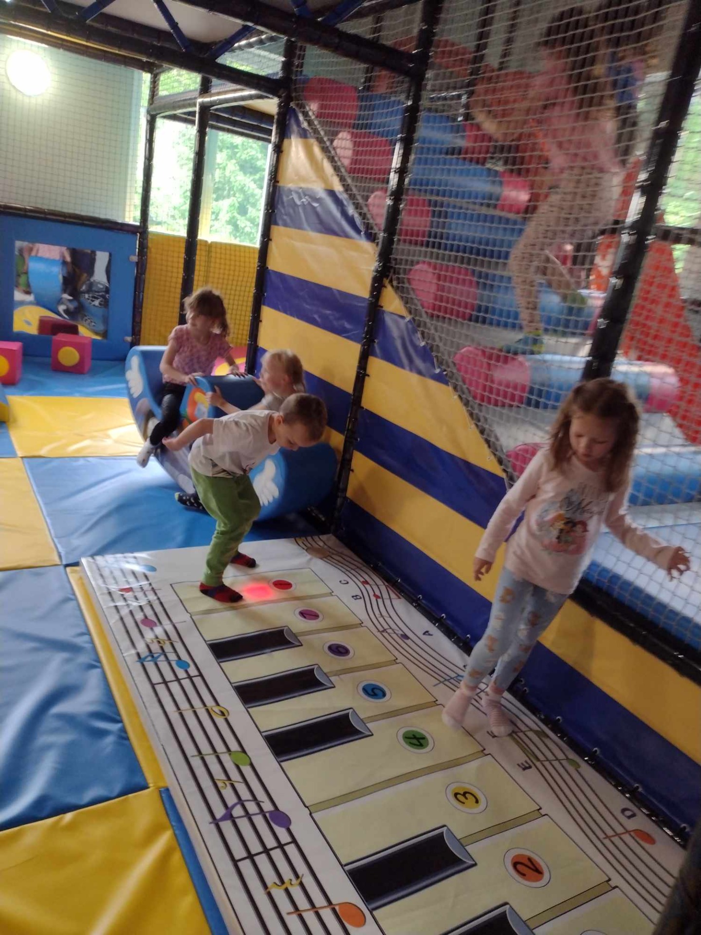 Po części edukacyjnej przyszedł czas na zabawę. Atrakcje, jakie czekały na dzieci, sprawiły im mnóstwo radości. Przedszkolaki korzystały z sali zabaw, dmuchanych zamków, parku linowego oraz toru turbinowego. Dużym powodzeniem cieszyła się również jazda na tyrolce oraz pływanie małymi łódeczkami w specjalnym basenie.