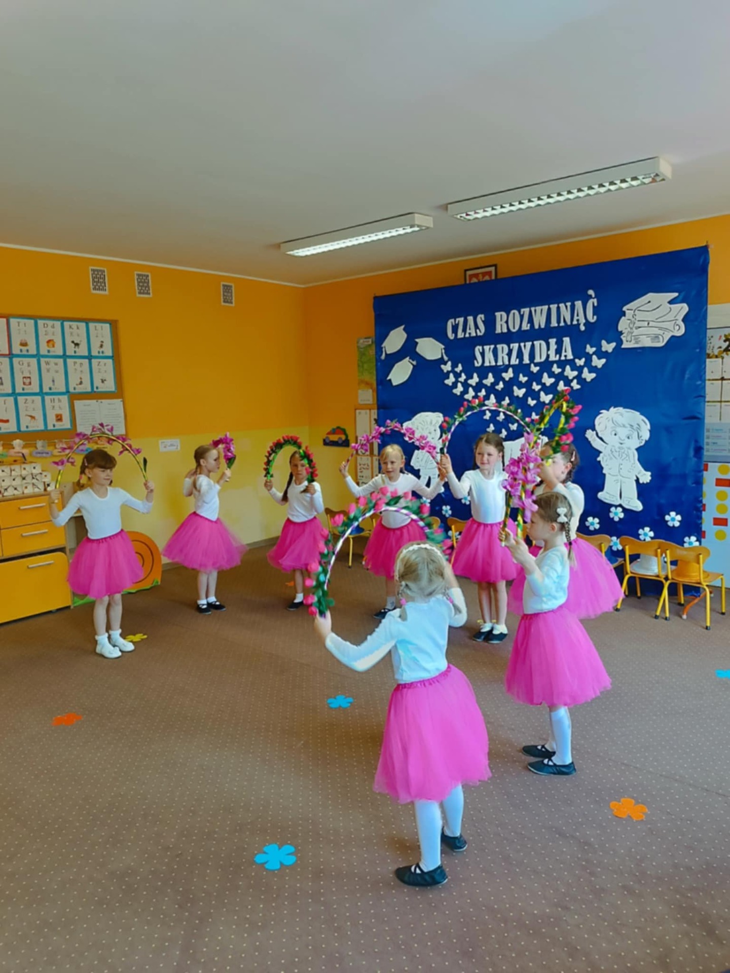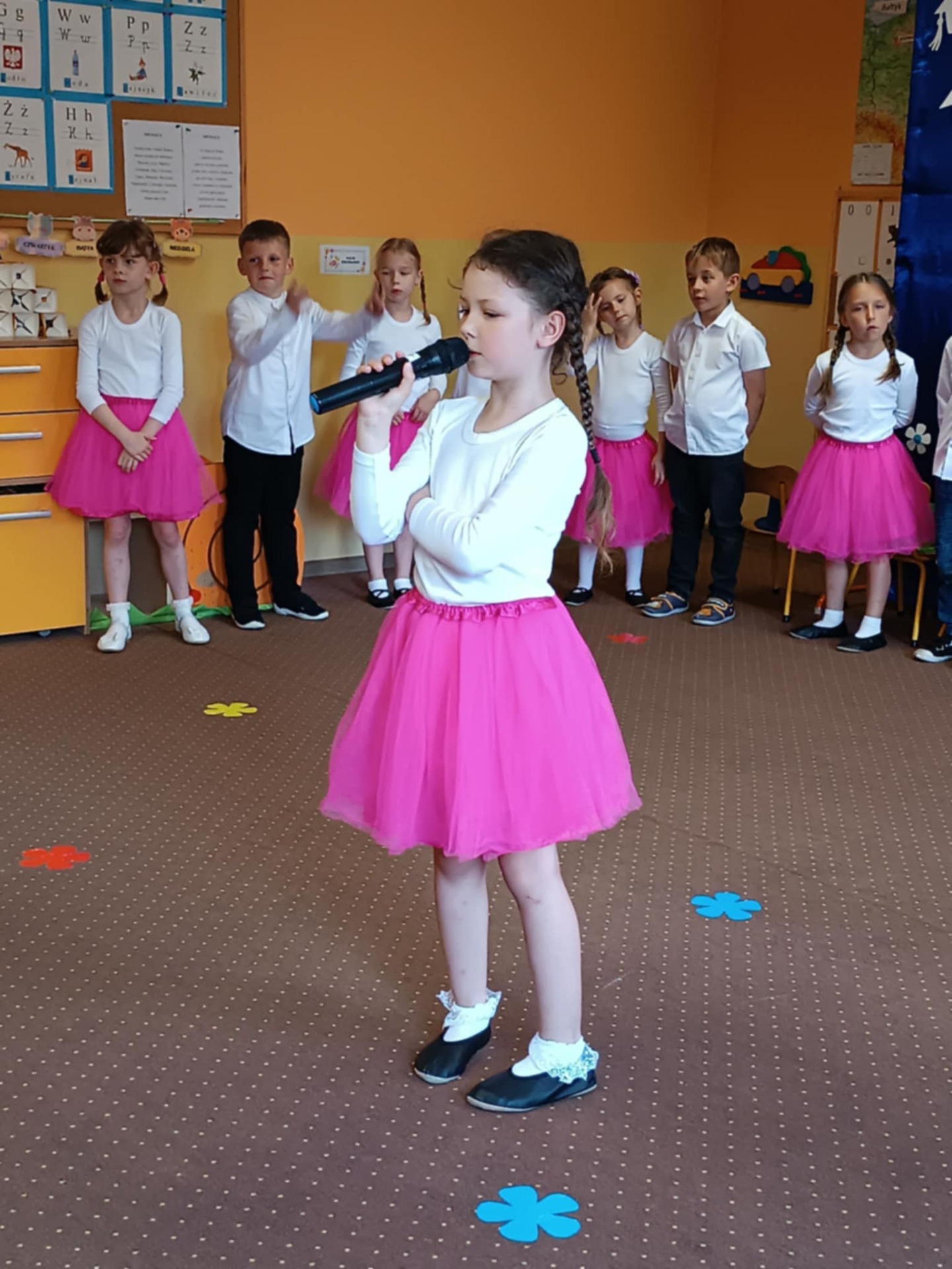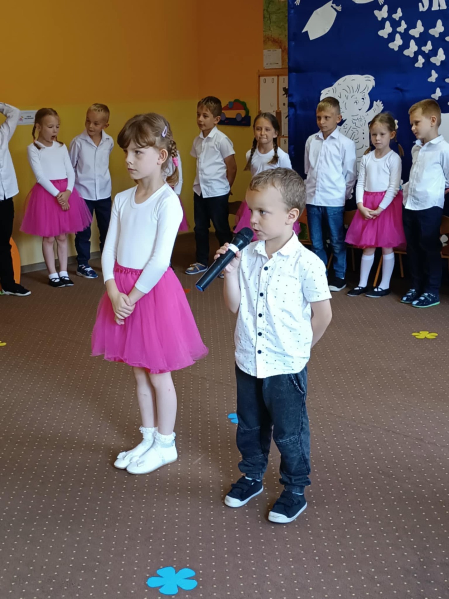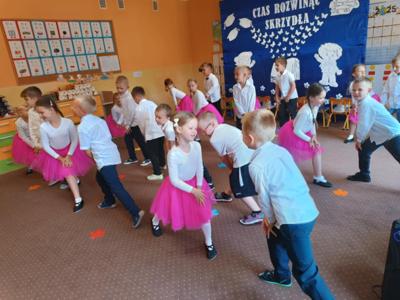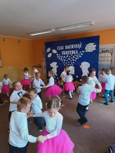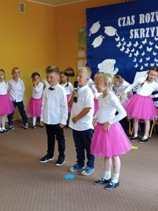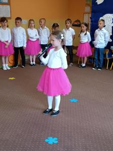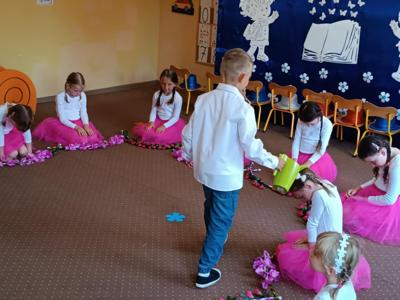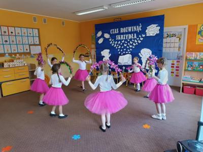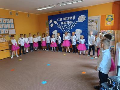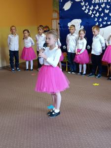 Starszaki zaprezentowały piękny program artystyczny przygotowany pod kierunkiem swoich wychowawczyń – pani Kasi i pani Madzi. Występy dzieci obejmowały wiersze, piosenki i tańce, które zebrani goście nagradzali gromkimi brawami.