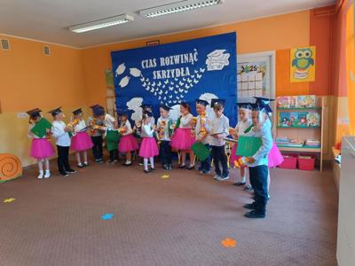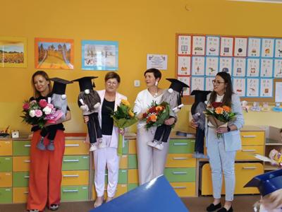 Po zakończeniu programu artystycznego głos zabrała pani dyrektor. Podziękowała rodzicom za całoroczną współpracę i zaangażowanie, a dzieciom życzyła wielu sukcesów, uśmiechu i radości w nowym etapie edukacyjnym, jakim jest szkoła. Następnie wręczyła wszystkim starszakom pamiątkowe dyplomy.