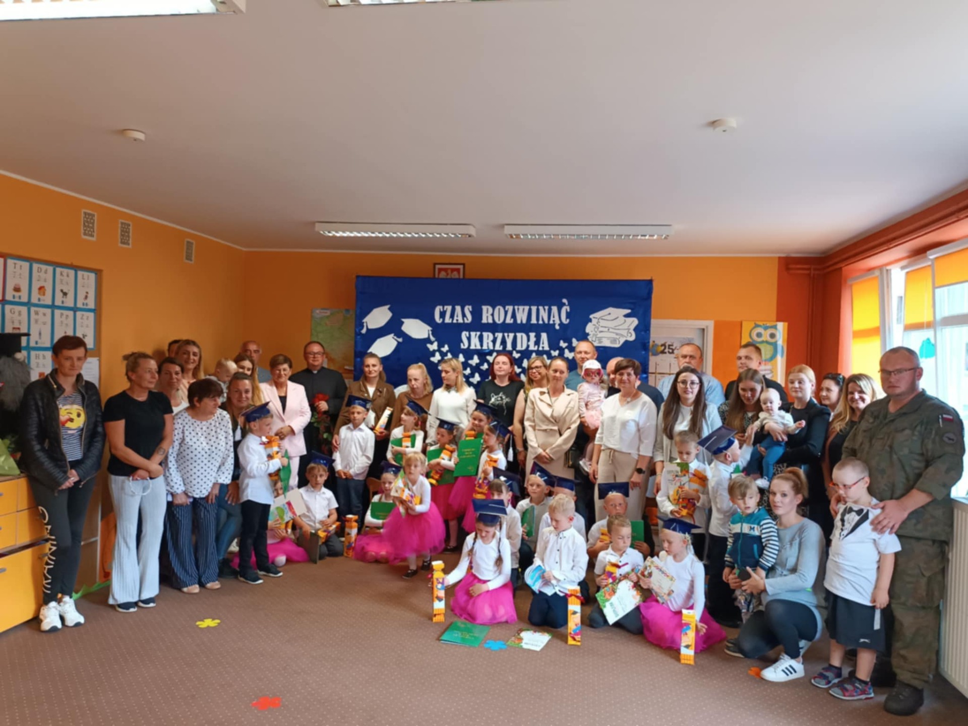 Za piękny i poruszający występ dzieci zostały obdarowane mnóstwem słodkości. Na zakończenie wszyscy zebrani ustawili się do wspólnej fotografii, by zachować na pamiątkę ten wyjątkowy dzień.