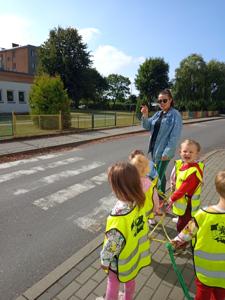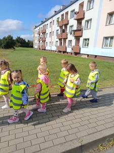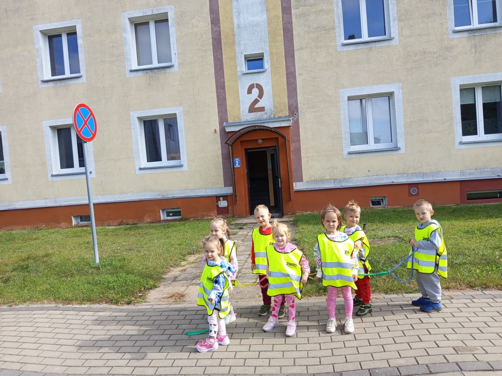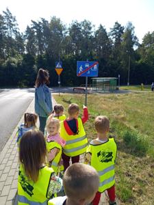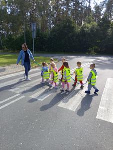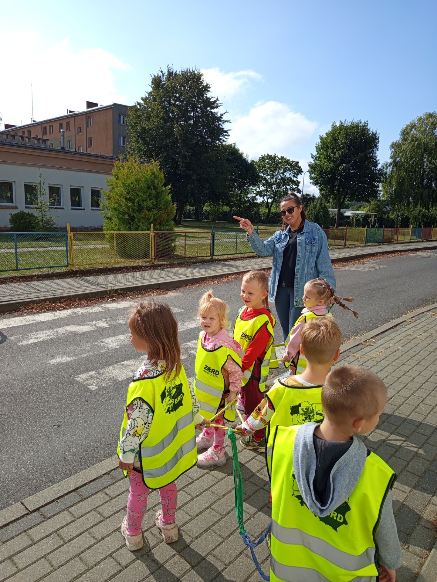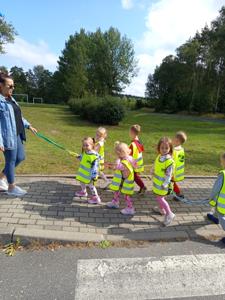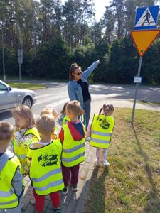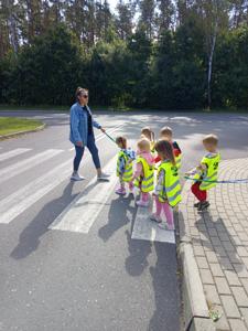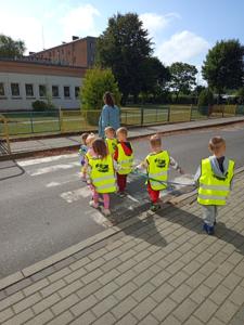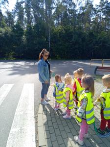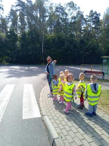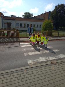 8 września w ramach realizacji tematu kompleksowego "Jak być bezpiecznym", dzieci z grupy „Biedronek” ubrane w kamizelki odblaskowe, udały się na spacer na przejście dla pieszych, by utrwalić zasady bezpiecznego przechodzenia przez ulicę. Podczas spaceru rozpoznawały poznane w przedszkolu znaki drogowe.
