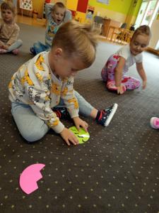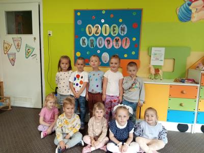 15 września obchodzimy Międzynarodowy Dzień Kropki, wspaniałe święto celebrujące inność, kreatywność i rozwijanie ukrytego potencjału, tam gdzie nikt się go nie spodziewa. W tym dniu „Biedronki” miały na sobie ubranka w kropki. Na początku dzieci wysłuchały opowiadania o niezwykłej kropce, dowiedziały się co może z nich powstać. Następnie przy piosence „Kropka” maluszki utrwaliły nazwy kolorów.  Dzieci różnicowały kropki, dzieląc je na mniejsze  i większe, poszukiwały kropek do pary. Na koniec wykonały pracę plastyczną „Liść”,  uruchamiając przy tym własną wyobraźnie i kreatywność.