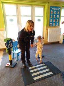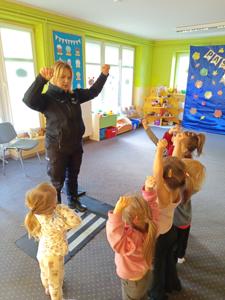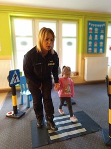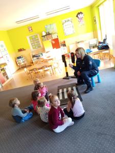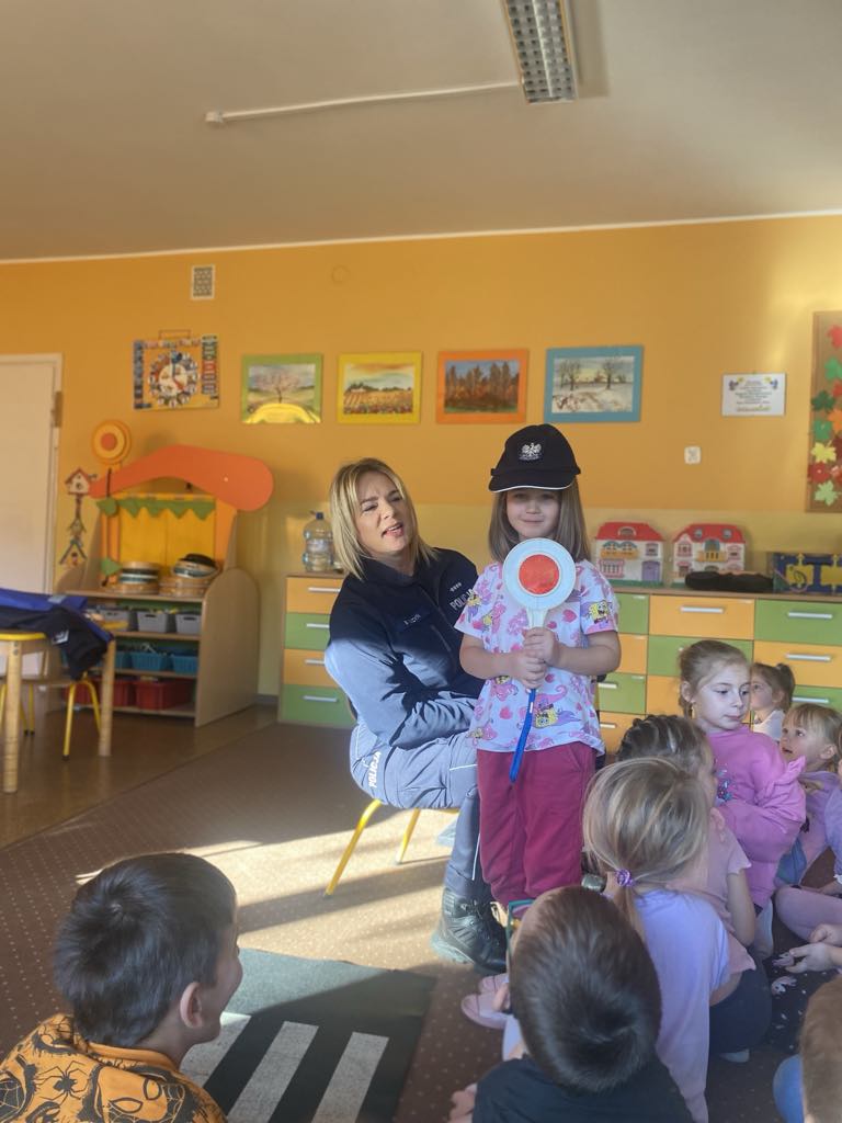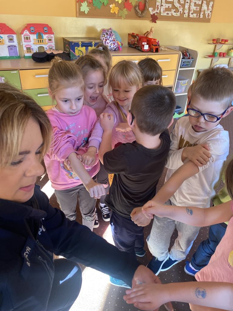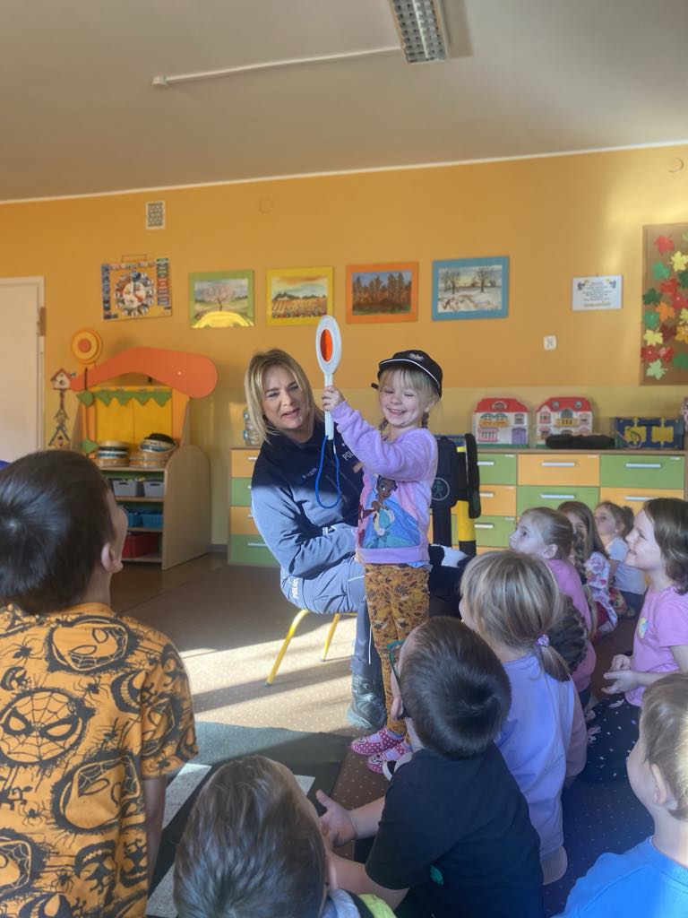 21 listopada 2025 roku w naszym przedszkolu odbyło się spotkanie z panią Beatą Budzyń – policjantką z Komendy Powiatowej Policji w Wałczu, którego celem było przybliżenie dzieciom zawodu policjanta oraz przypomnienie zasad bezpiecznego poruszania się po drodze. Na początku pani Beata opowiedziała przedszkolakom o swojej codziennej pracy, o tym, jak pomaga ludziom i dba o bezpieczeństwo wszystkich mieszkańców. Następnie pani policjantka zaprezentowała mundur policyjny – dzieci mogły zobaczyć, jak wygląda, jakie ma elementy i do czego służą. Podczas spotkania poruszony został bardzo ważny temat bezpiecznego przechodzenia przez jezdnię – zarówno na przejściu bez sygnalizatora świetlnego, jak i z sygnalizacją. Spotkanie przebiegło w miłej i wesołej atmosferze. Dzieci z dużym zaangażowaniem uczestniczyły w rozmowie i zabawach, a na zakończenie podziękowały pani Beacie za ciekawą wizytę oraz poświęcony czas.