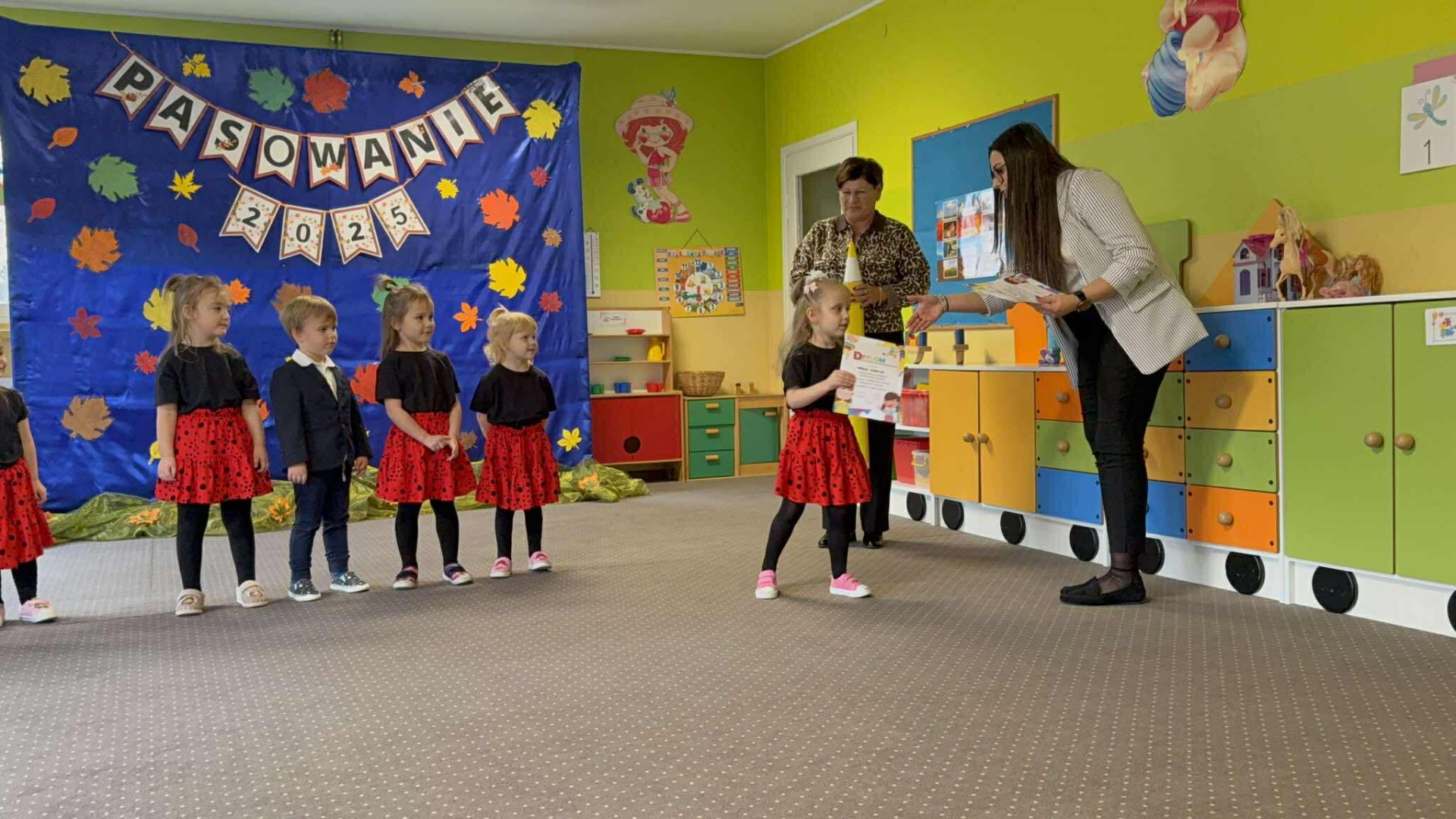 7 listopada, w grupie "Biedronek” odbyło się Pasowanie na Przedszkolaka. Uroczystość rozpoczęła część artystyczna, w której dzieci zaprezentowały swoje umiejętności recytatorskie, wokalne i taneczne. Występy przedszkolaków wzbudzały wśród rodziców dumę i zachwyt, czego dowodem były gromkie brawa. Po części artystycznej dzieci złożyły uroczyste ślubowanie, po którym Pani dyrektor Halina Rogowska, za pomocą "magicznej kredki" dokonała aktu Pasowania na Przedszkolaka. Na pamiątkę tej ważnej chwili do wszystkich maluszków trafiły upominki. "Biedronki" spisały się na medal i udowodniły, że są już prawdziwymi przedszkolakami. Gratulujemy!