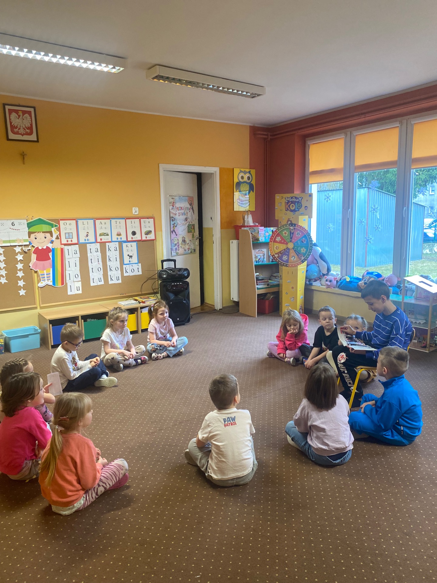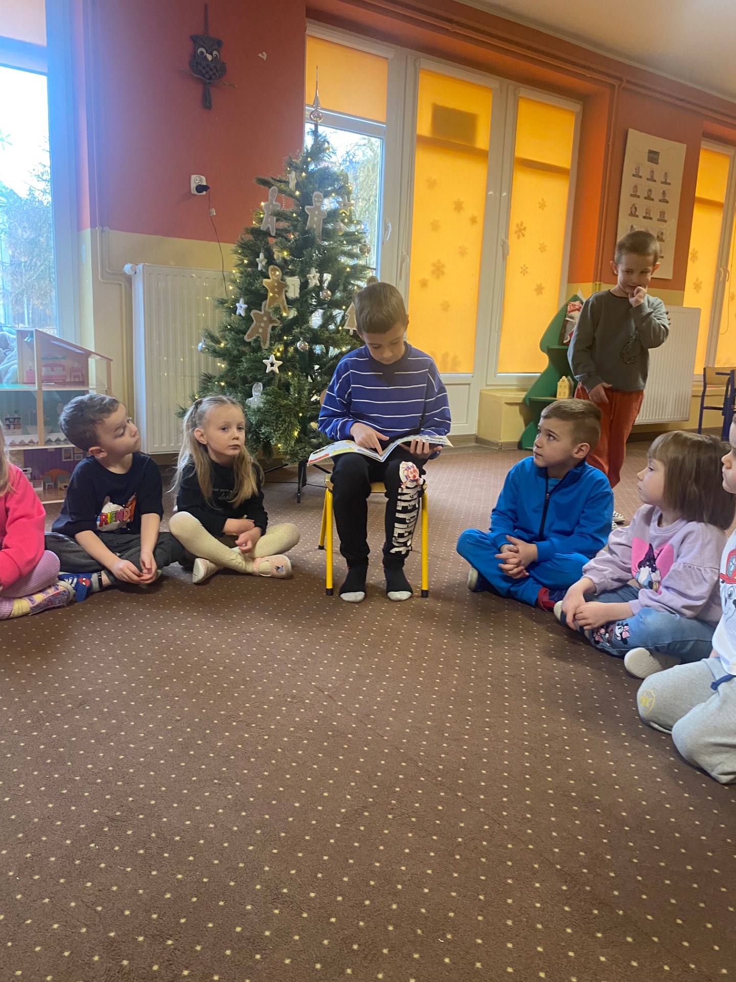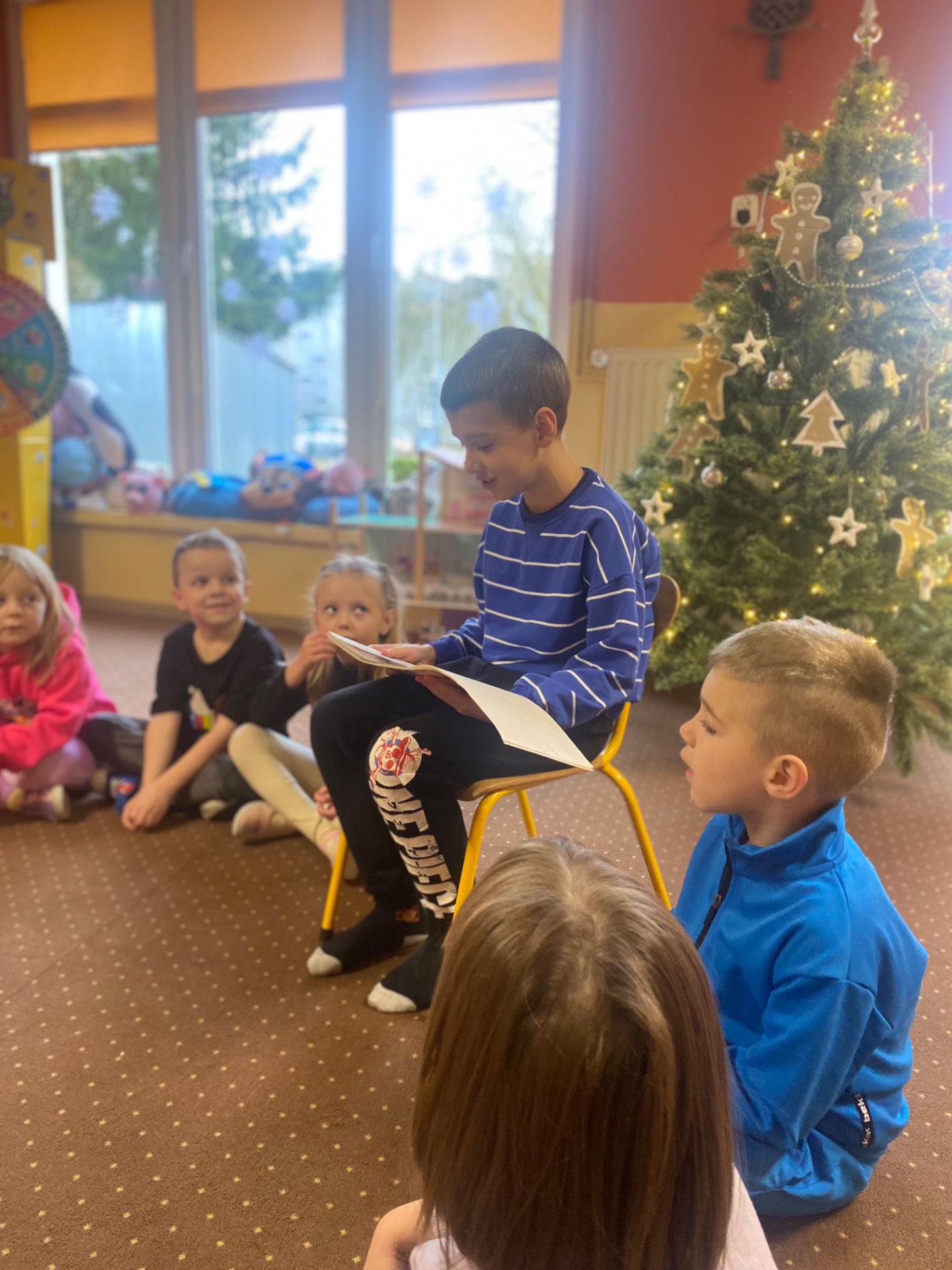 1 grudnia grupę Motylki odwiedził uczeń 3 klasy Szkoły Podstawowej- Tymon Drogomirecki, absolwent Przedszkola ,,Słoneczko'' w Mirosławcu Gòrnym. Tymon przeczytał dzieciom wiersz Juliana Tuwima ,, Lokomotywa''. Dzieci z zainteresowaniem słuchały dobrze znanego im wierszyka, czytanego tym razem nie przez panią , a przez starszego kolegę. Po przeczytaniu ,,Lokomotywy'', przedszkolaki zadawały Tymonowi pytania - Jak to jest być uczniem i czy w szkole jest fajnie? Na zakończenie spotkania starszaki wręczyły chłopcu własnoręcznie wykonane rysunki , przygotowane specjalnie dla Niego. Tymon obiecał, że jeszcze nas odwiedzi.