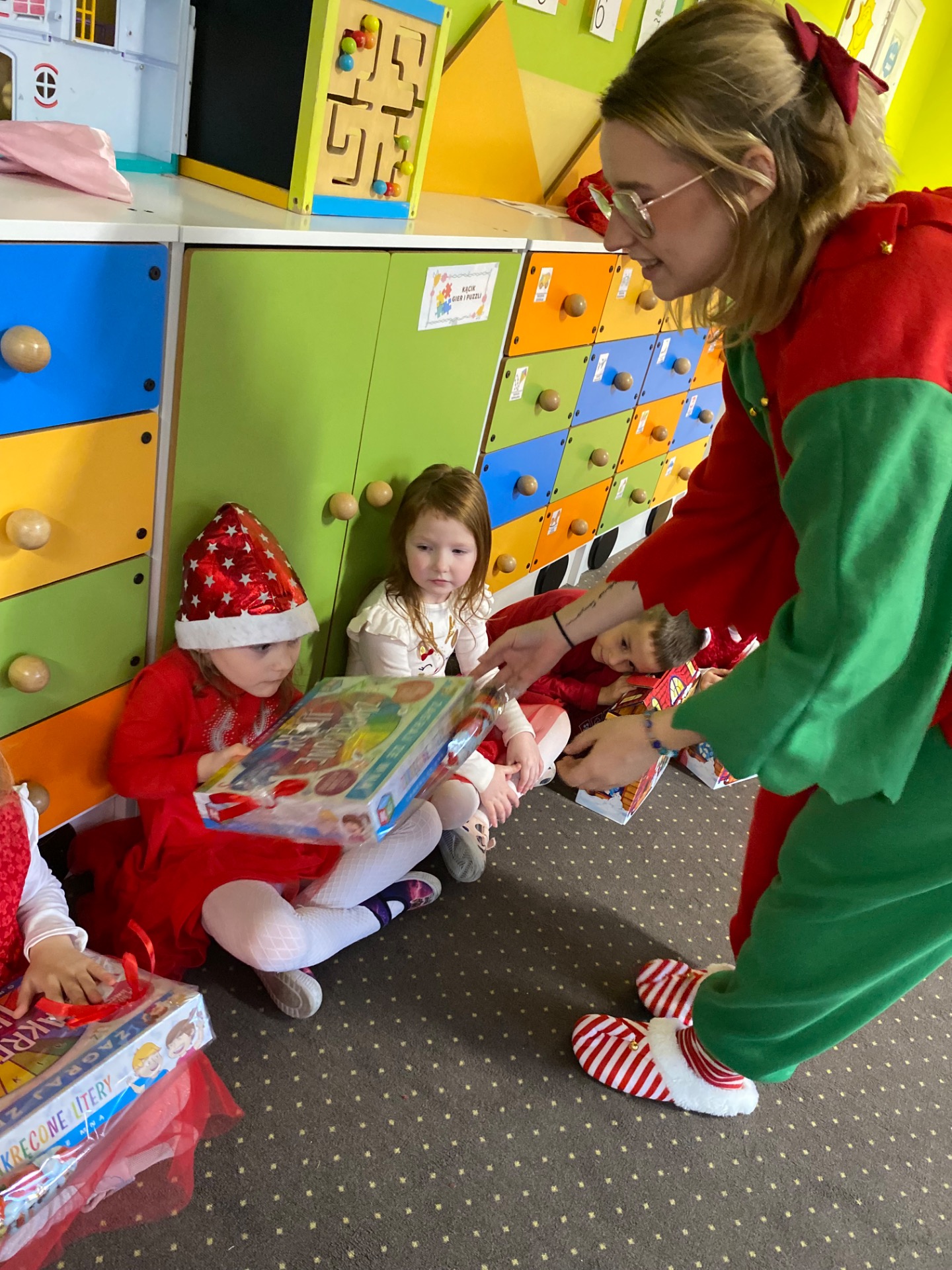 Ach, có偶 to by艂 za dzie艅!!!! Ju偶 od rana wita艂 dzieci sam Miko艂aj. Chwil臋 pó藕niej przedszkolaki odwiedzi艂 radny pan Robert Bia艂y艅ski, przynosz膮c kolejne prezenty. Do przedszkola wpad艂y te偶 weso艂e elfy, które porwa艂y dzieci do wspólnej zabawy, a po szalonej zabawie znów czeka艂y na przedszkolaki prezenty pozostawione przez Miko艂aja. Na koniec dnia przedszkole odwiedzi艂a pani so艂tys Angelika König- Krakowaka z kolejn膮 porcj膮 upominków dla dzieci.